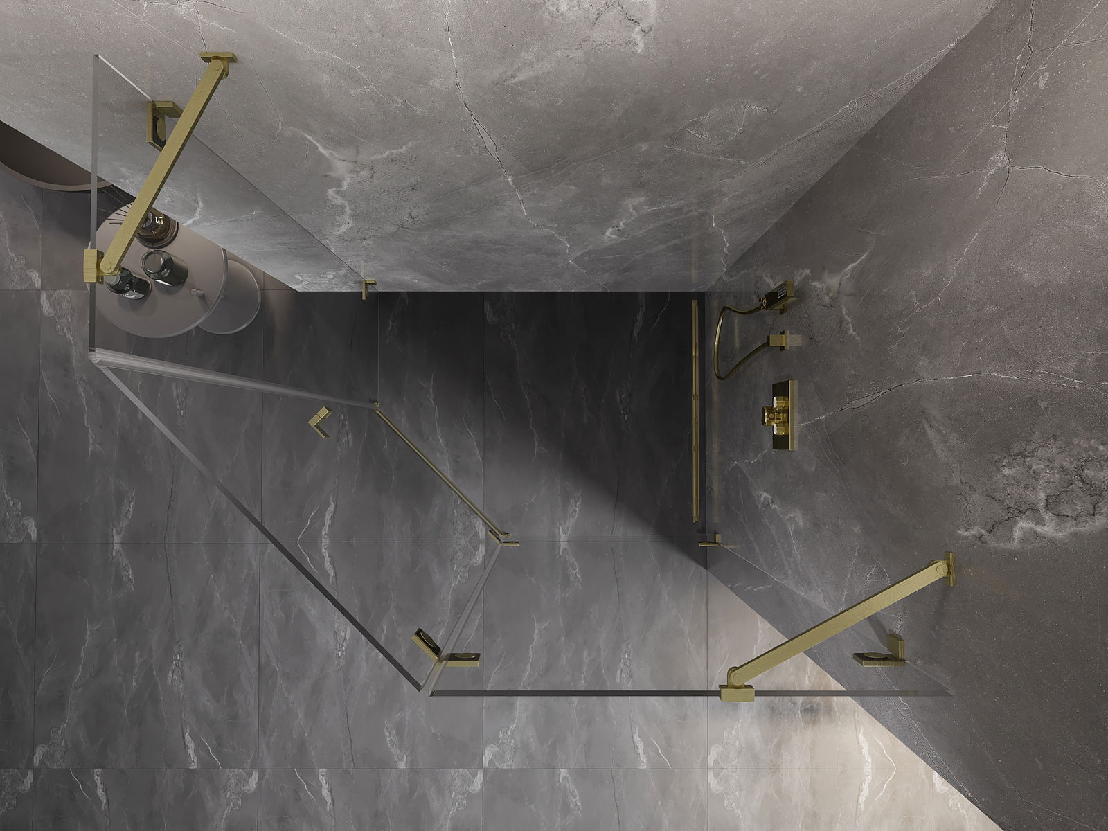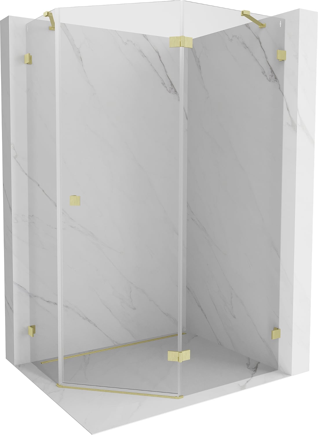 Mexen Lunar cabine de douche pentagonale pivotante droite 100 x 80 cm, transparente, or brossé - 831-100P-080L-55-00-P