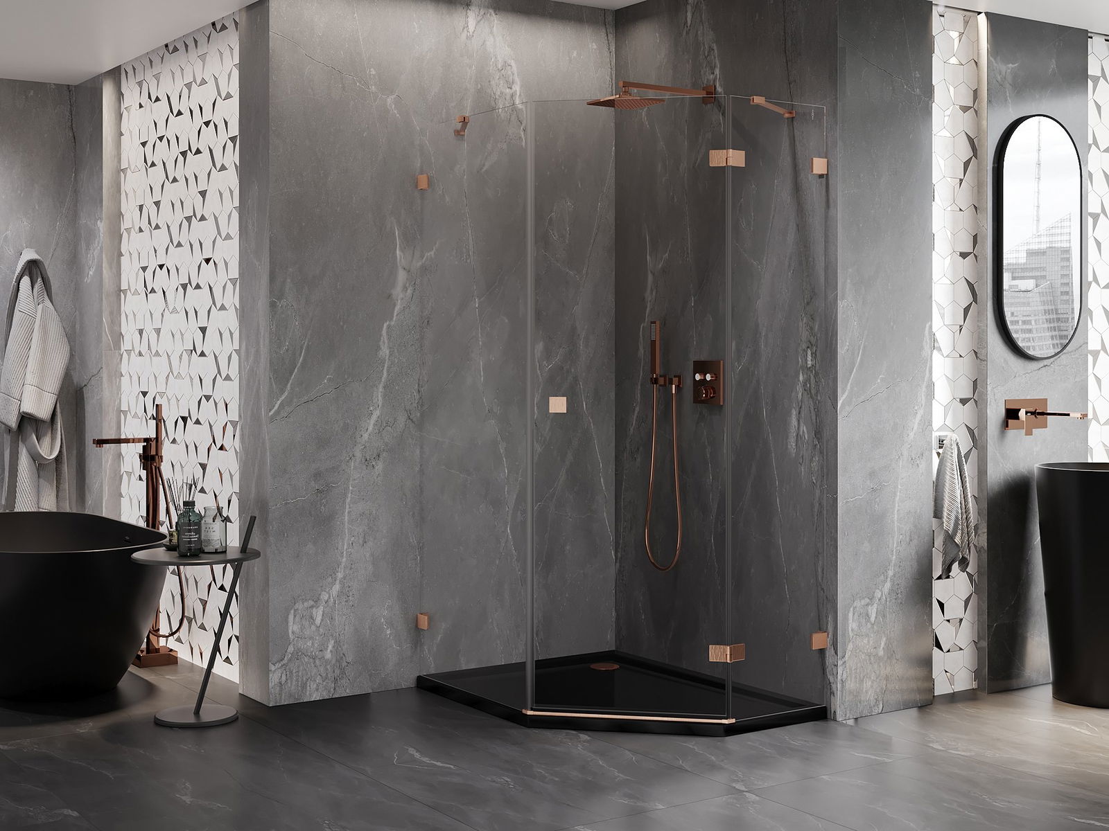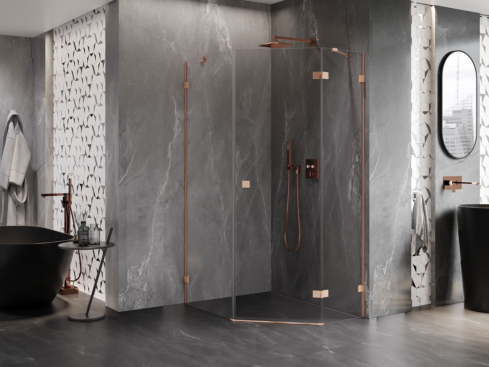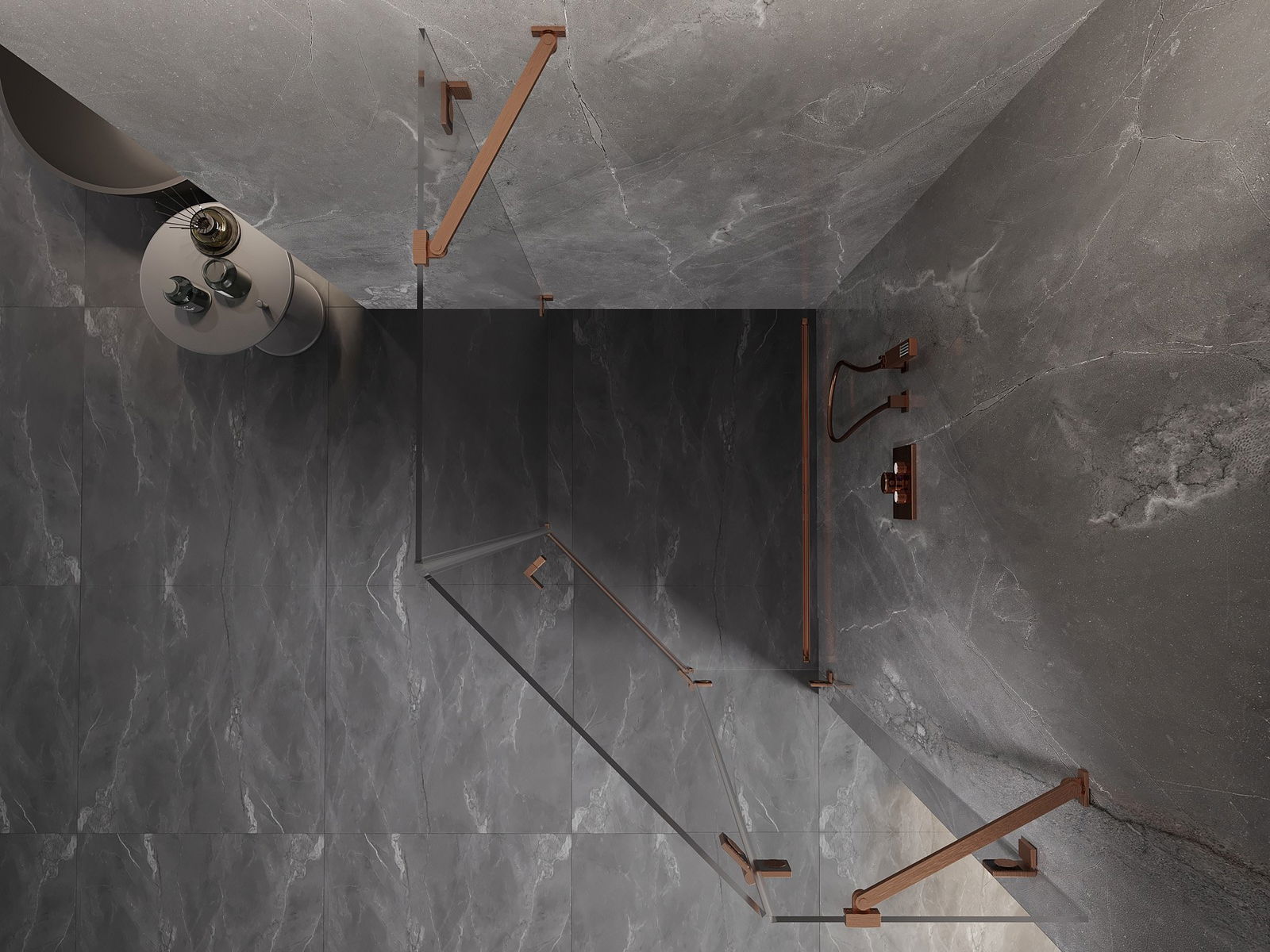 Mexen Lunar cabine de douche pentagonale à charnière droite 80 x 90 cm, transparent, cuivre brossé - 831-080P-090L-65-00-P