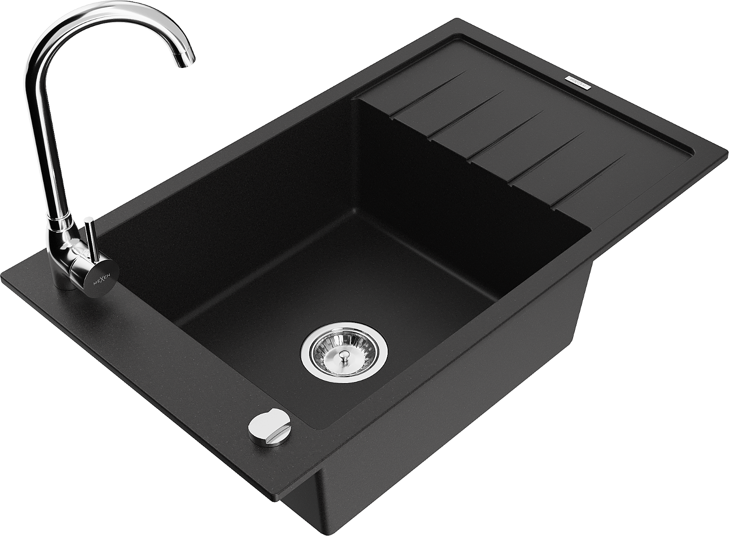 Mexen Elias évier en granit 1 bac avec égouttoir et robinet de cuisine Telma, noir - 6511-77-670200-00