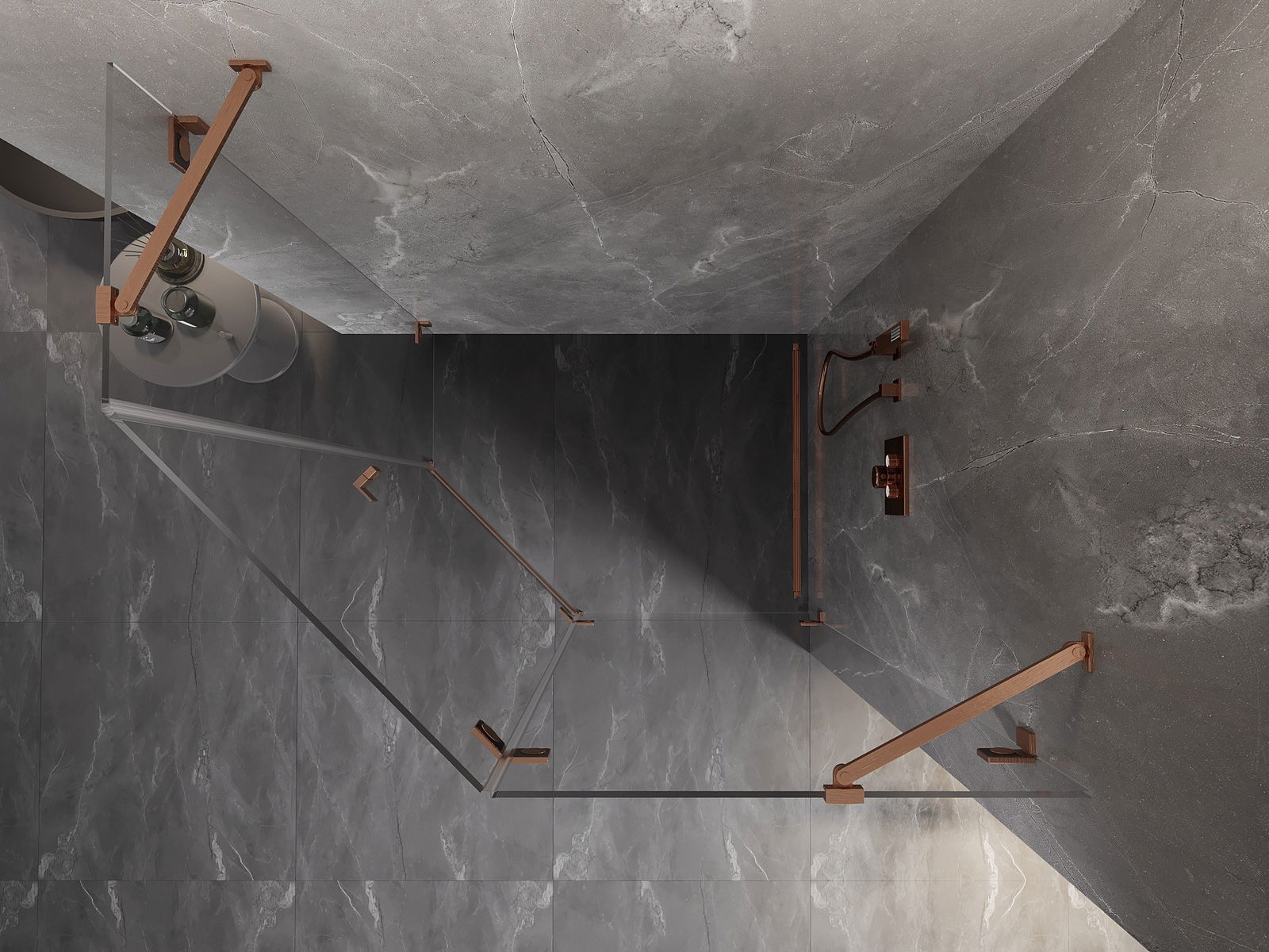 Mexen Lunar cabine de douche pentagonale pivotante droite 100 x 80 cm, transparent, cuivre brossé - 831-100P-080L-65-00-P