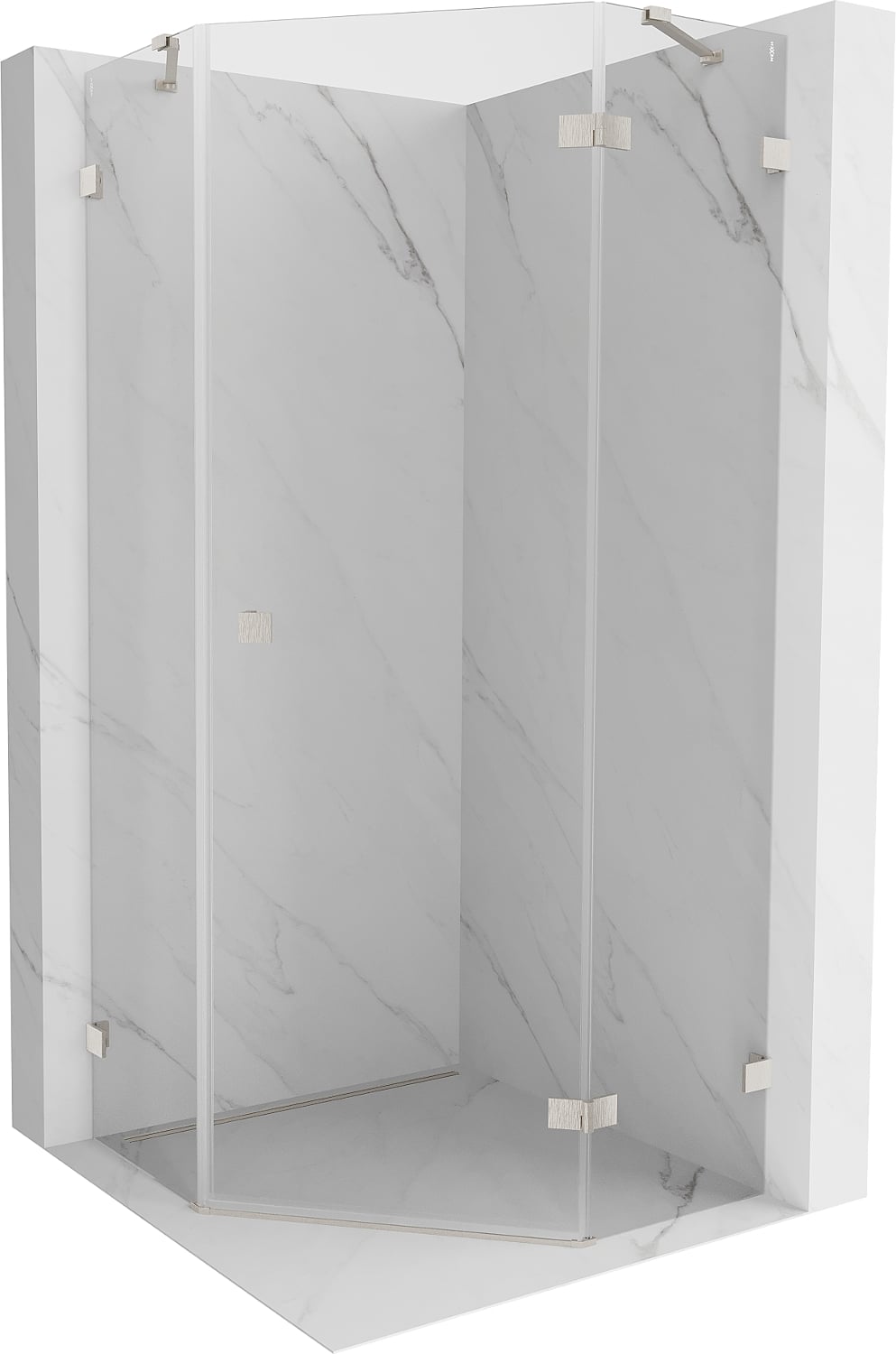 Mexen Lunar cabine de douche pentagonale pivotante droite 80 x 80 cm, transparent, nickel brossé - 831-080P-080L-97-00-P