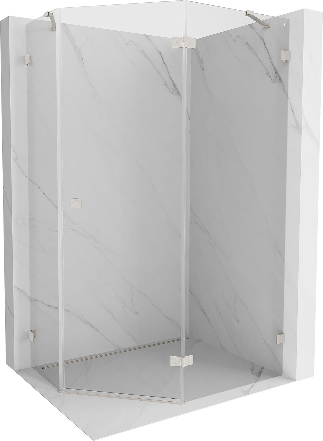 Mexen Lunar cabine de douche pentagonale pivotante droite 100 x 80 cm, transparent, nickel brossé - 831-100P-080L-97-00-P