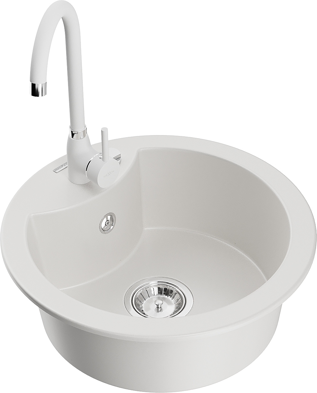 Mexen Diego évier en granit à 1 bac avec robinet de cuisine Telma, blanc - 6512-20-670200-20