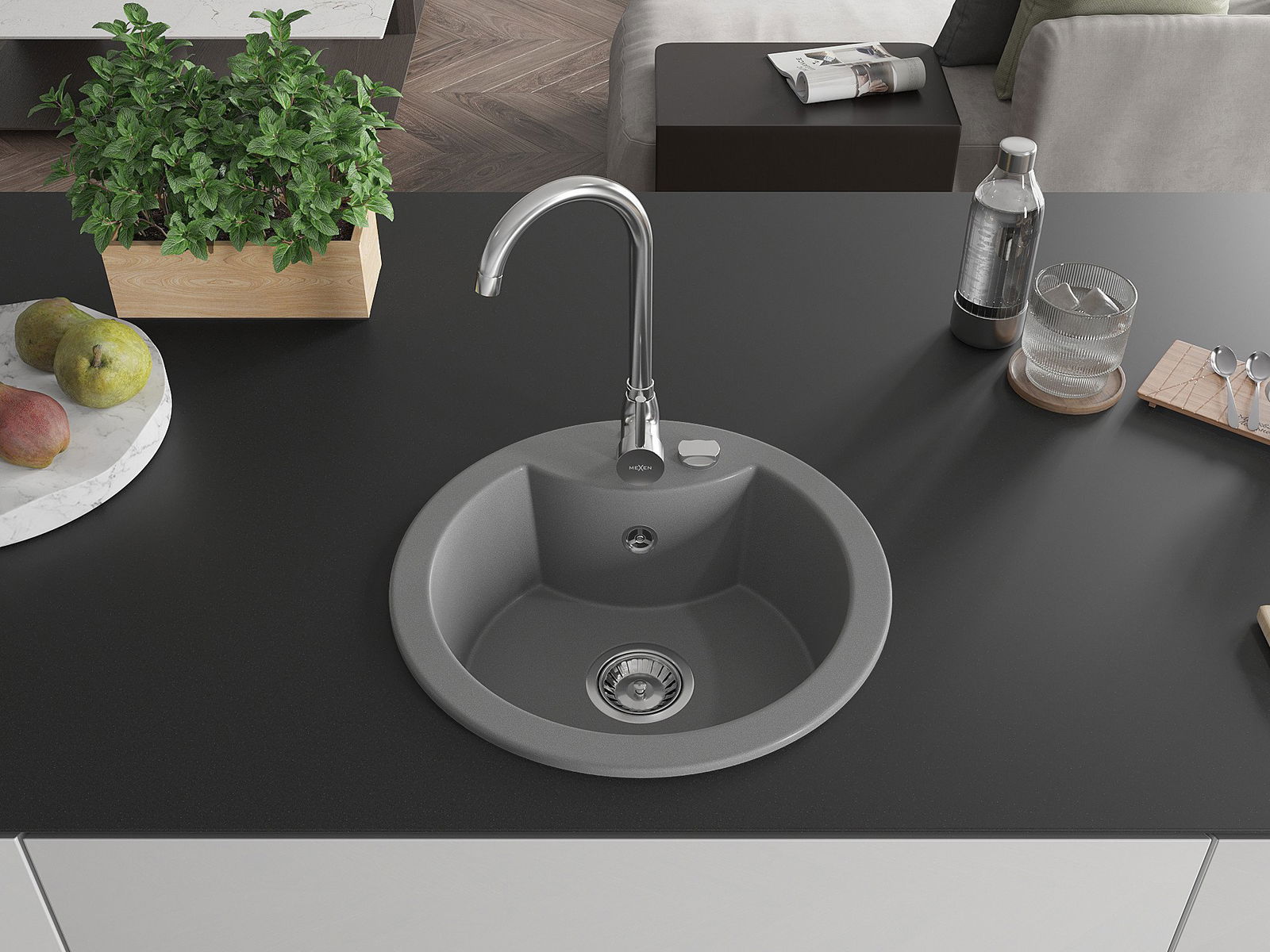L'évier est fabriqué en granit de haute qualité. Il constitue un complément élégant et surtout pratique pour toute cuisine, quel que soit son style. La qualité et la durabilité du granit garantissent de nombreuses années d'utilisation.
