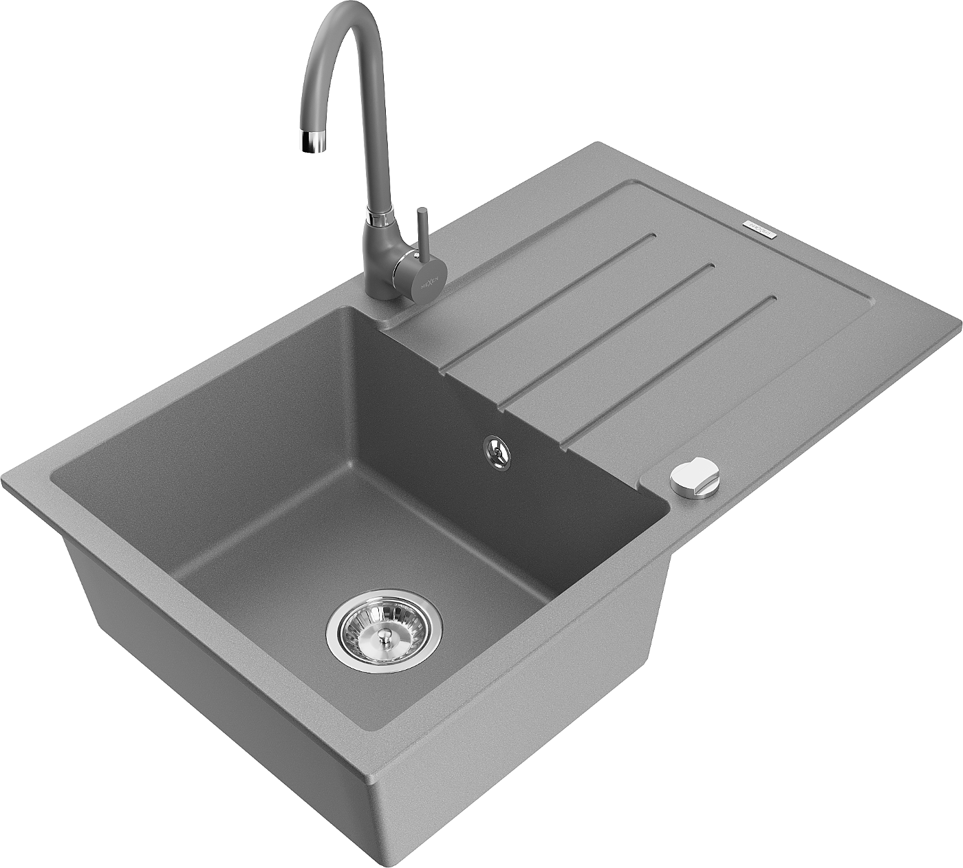 Mexen Bruno évier en granit 1 bac avec égouttoir et robinet de cuisine Telma, gris - 6513-71-670200-71