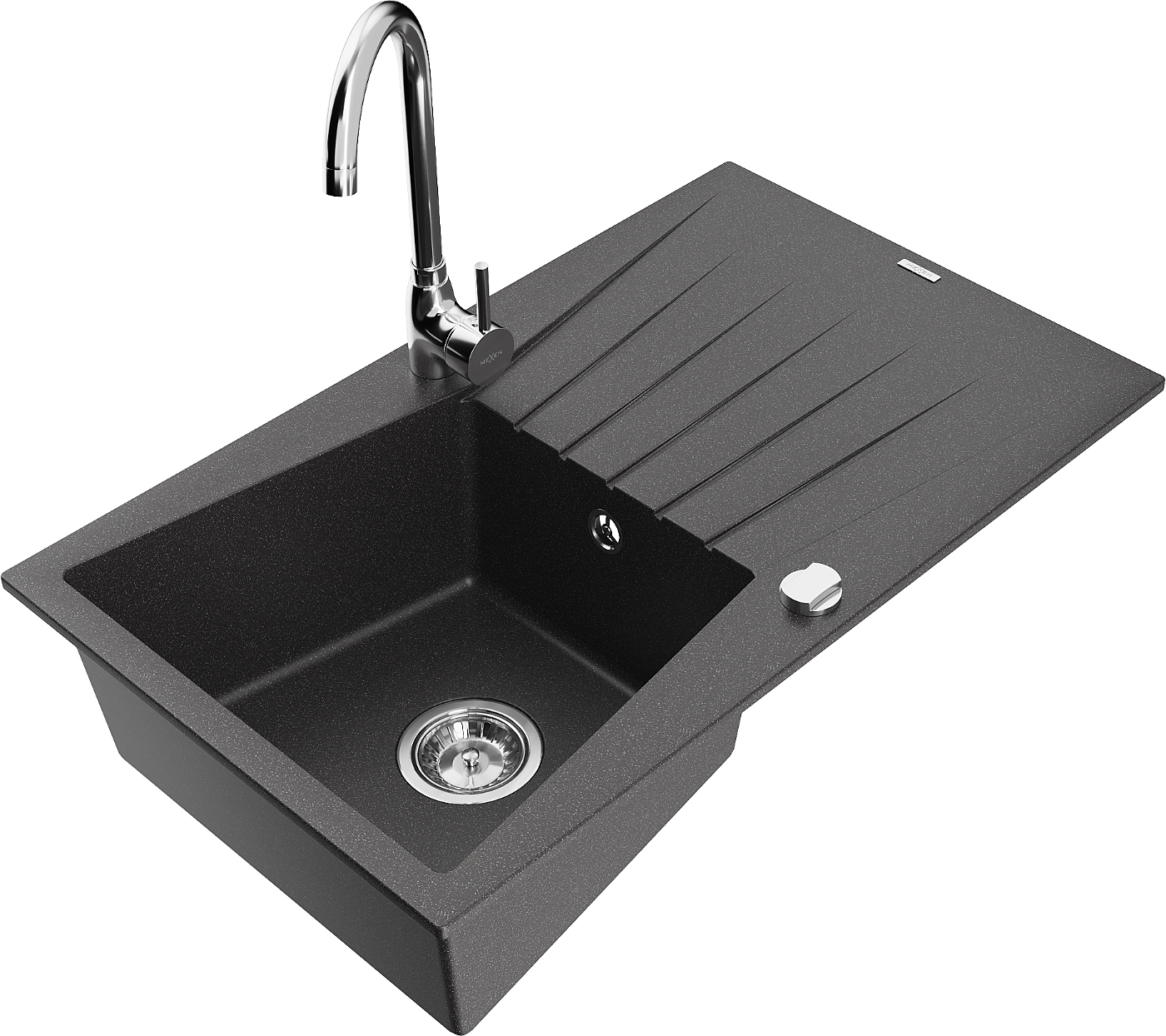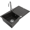Mexen Cesar évier en granit 1-bac avec égouttoir et robinet de cuisine Telma, noir moucheté - 6514-76-670200-00