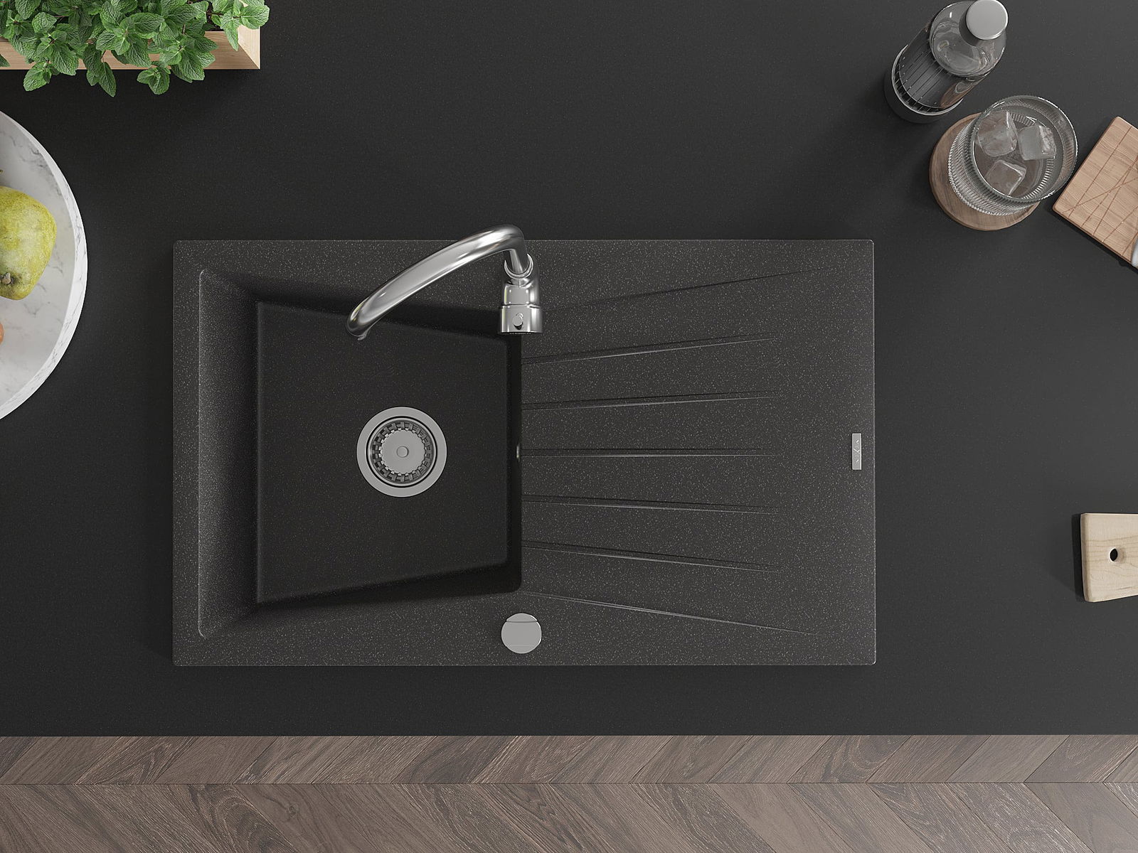 La surface de l'évier est très bien durcie, elle se distingue par une résistance exceptionnelle aux dommages mécaniques et aux rayures. Le matériau durable de fabrication permet de profiter de l'apparence de l'évier pendant de nombreuses années d'utilisation.
