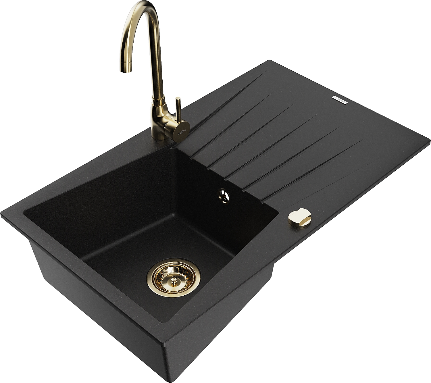 Mexen Cesar évier en granit 1 bac avec égouttoir et robinet de cuisine Telma, noir - 6514-77-670200-50