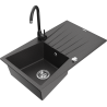Mexen Cesar évier en granit 1 bac avec égouttoir et robinet de cuisine Telma, noir - 6514-77-670200-70