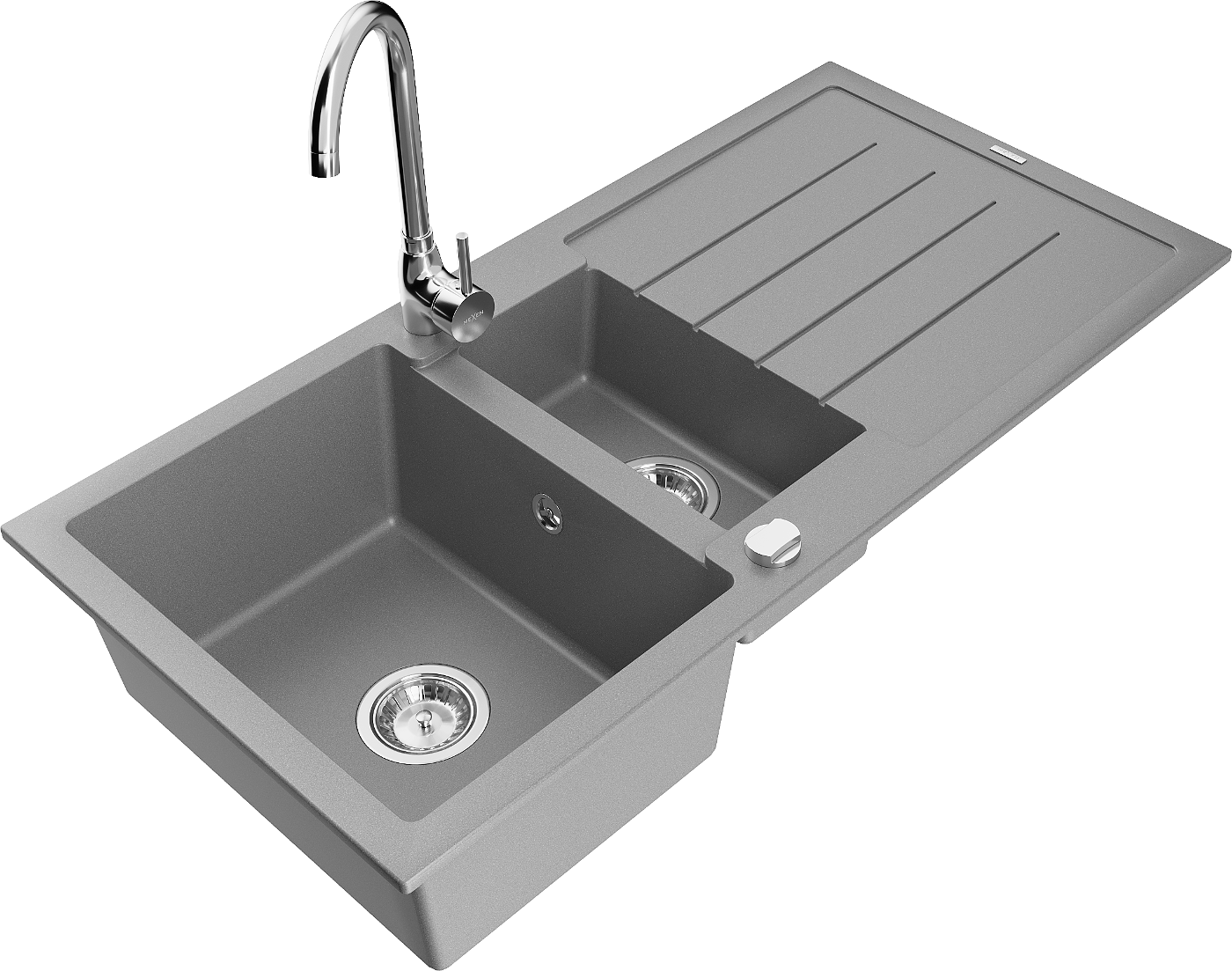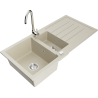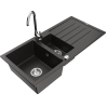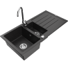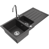 Mexen Andres évier en granit 1,5 bac avec égouttoir et robinet de cuisine Telma, gris - 6515-71-670200-00