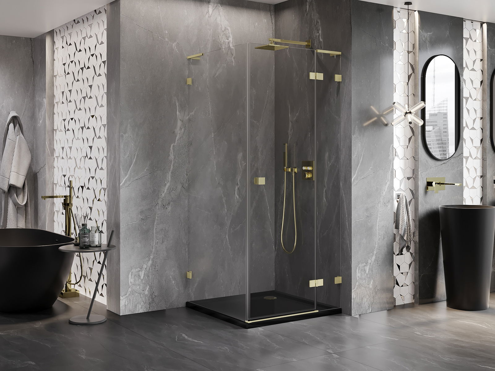 La poignée pratique et confortable est fabriquée en métal durable et résistant. Sa forme à la mode, combinée à une finition assortie à la couleur des profilés, donne à l'ensemble un aspect moderne et stylé, soulignant l'esthétique de chaque salle de bain.