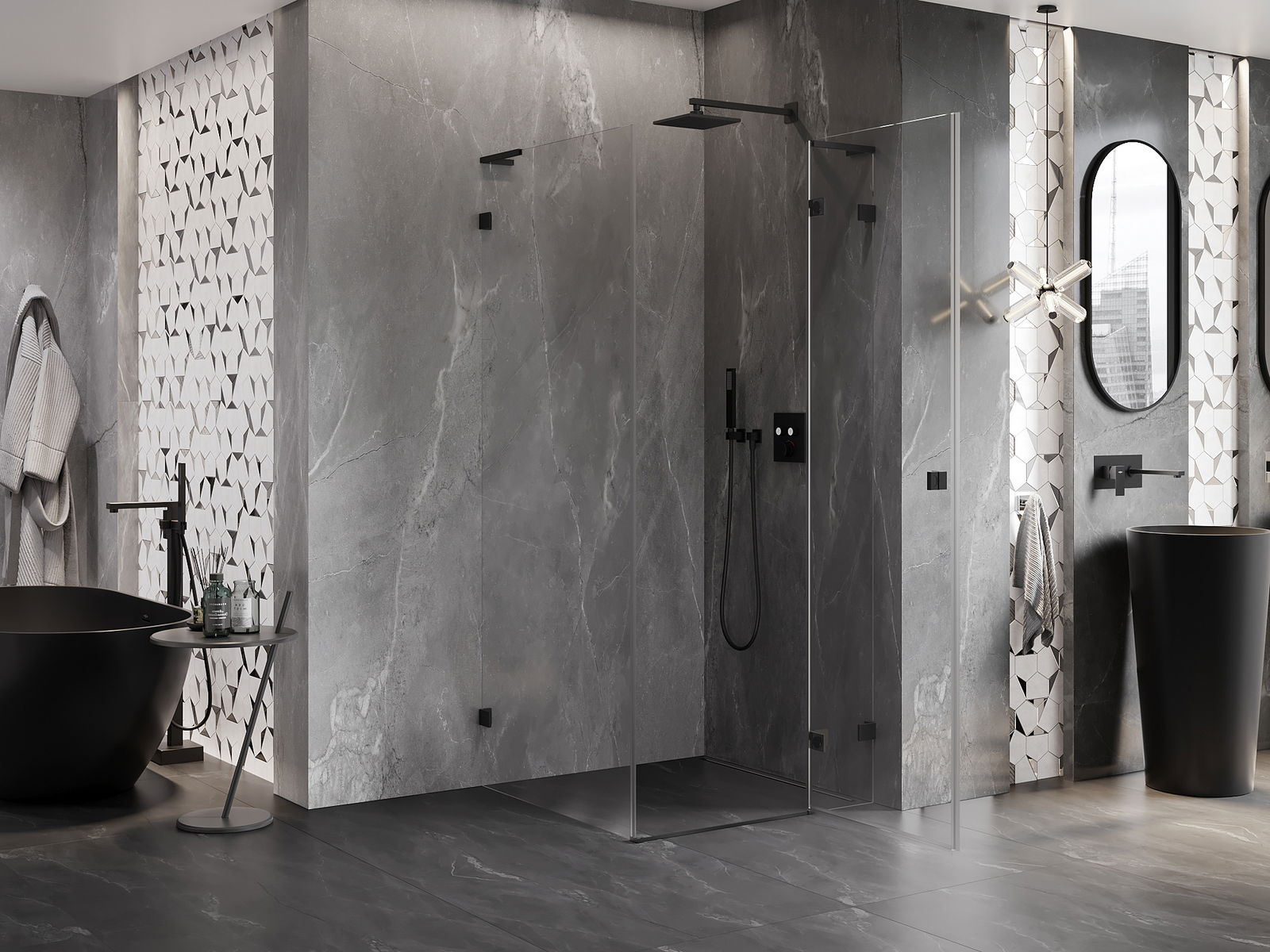La poignée pratique et confortable est fabriquée en métal durable et résistant. Sa forme à la mode, combinée à une finition assortie à la couleur des profilés, donne à l'ensemble un aspect moderne et stylé, soulignant l'esthétique de chaque salle de bain.