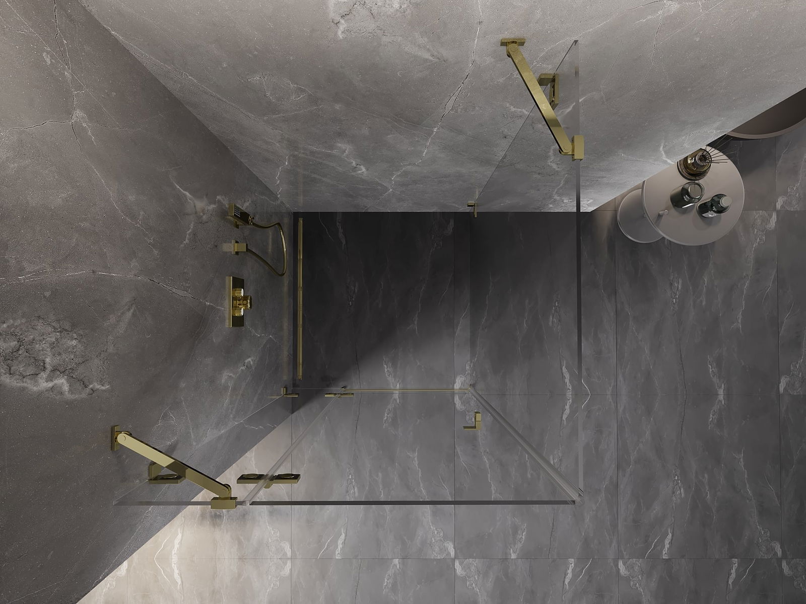 Mexen Lunar cabine de douche pivotante gauche 80 x 80 cm, transparent, doré - 834-080-080-50-00-L