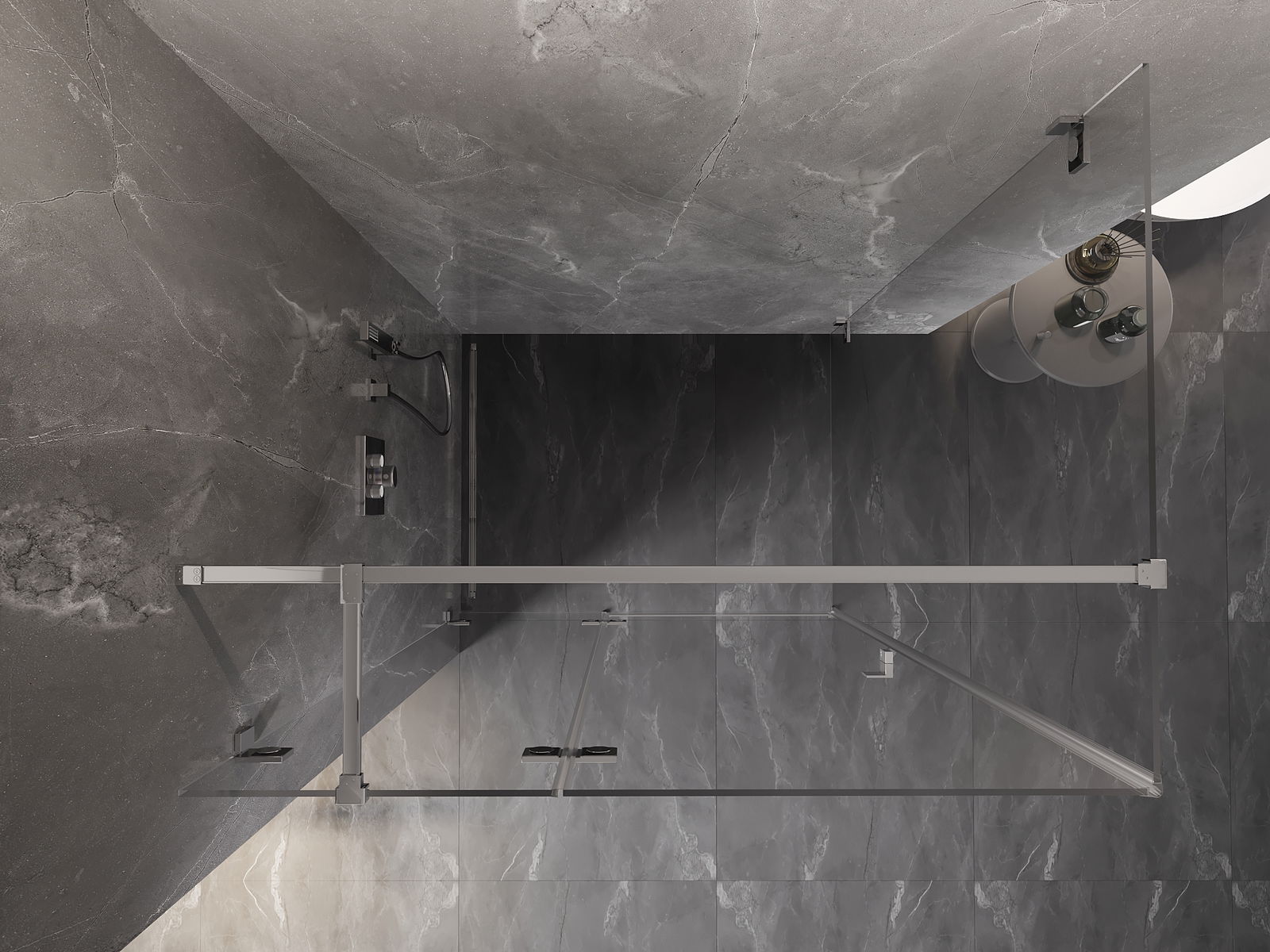 La poignée pratique et confortable est fabriquée en métal durable et résistant. Sa forme à la mode, combinée à une finition assortie à la couleur des profilés, donne à l'ensemble un aspect moderne et stylé, soulignant l'esthétique de chaque salle de bain.
