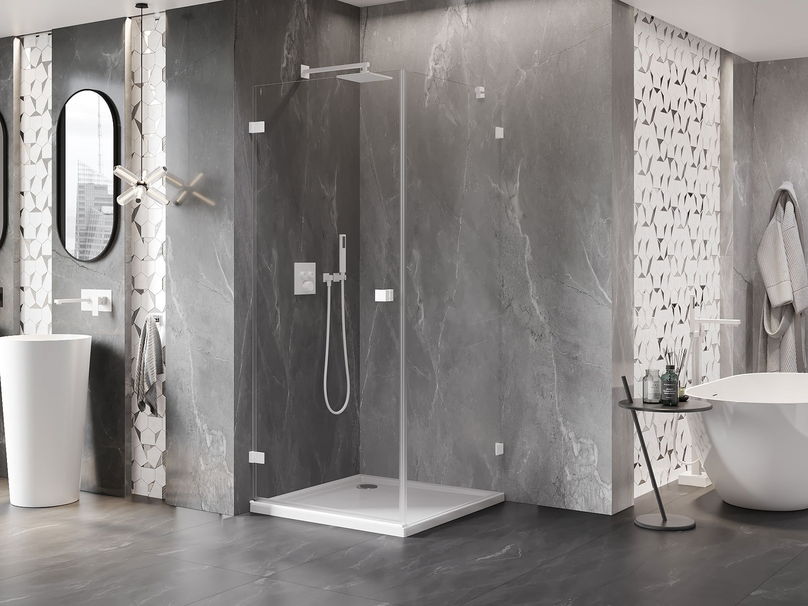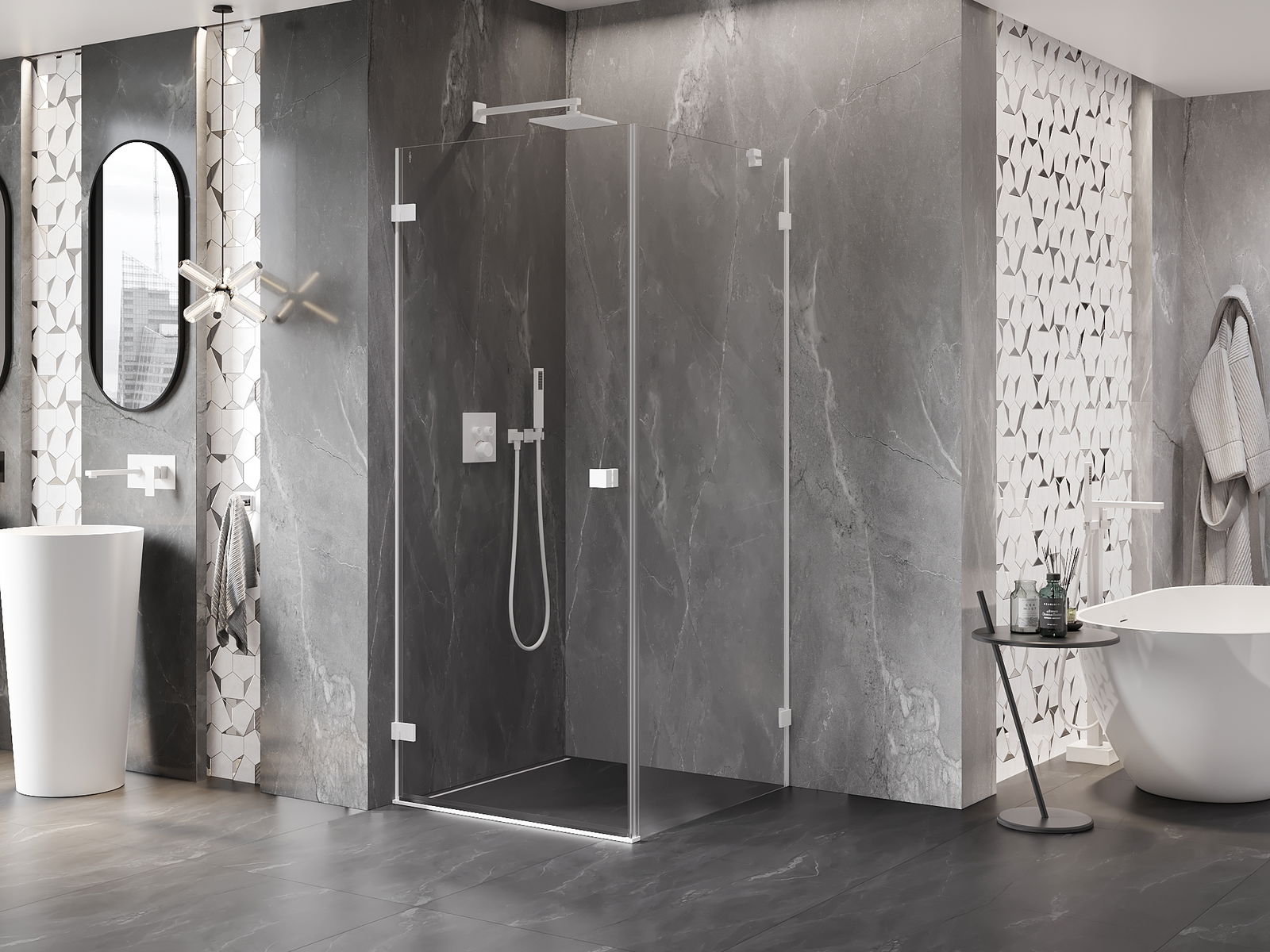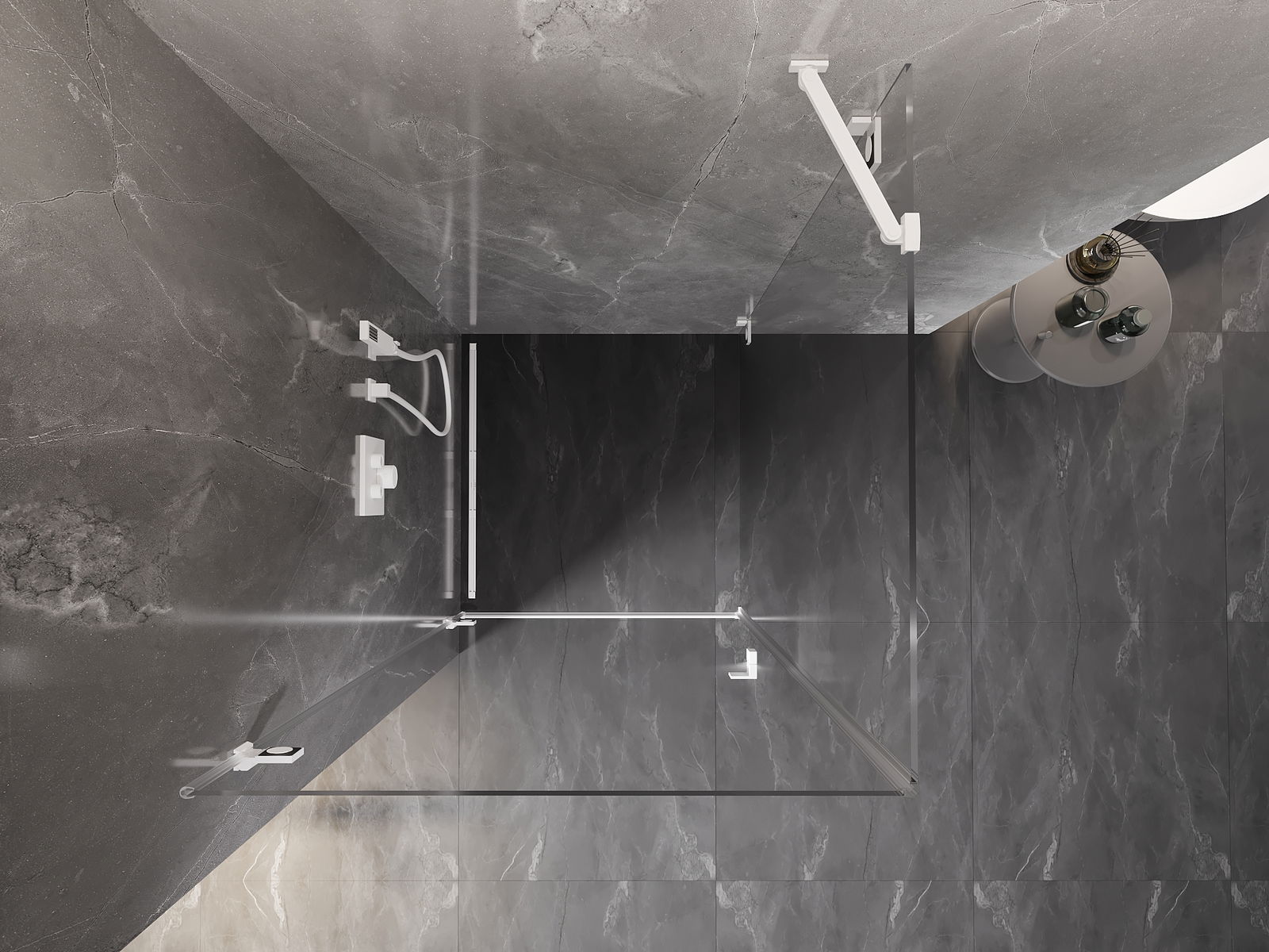 La poignée pratique et confortable est fabriquée en métal durable et résistant. Sa forme à la mode, combinée à une finition assortie à la couleur des profilés, donne à l'ensemble un aspect moderne et stylé, soulignant l'esthétique de chaque salle de bain.