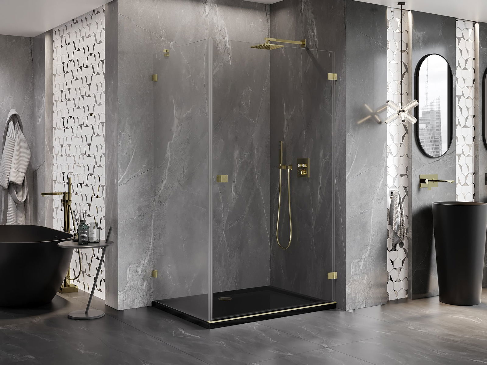 Mexen Lunar-B cabine de douche pivotante droite 100 x 90 cm, transparent, or brossé - 832-100-090-55-00-P