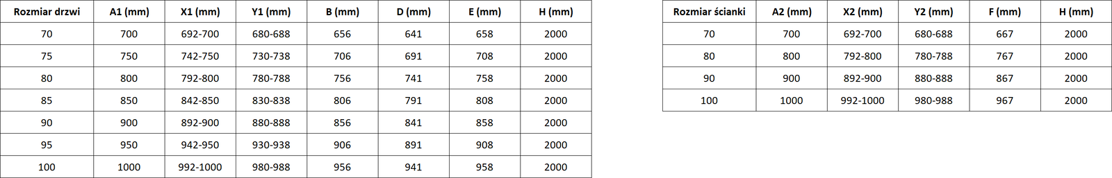 Taille: 90x80 cm (porte droite 90 cm, paroi 80 cm)