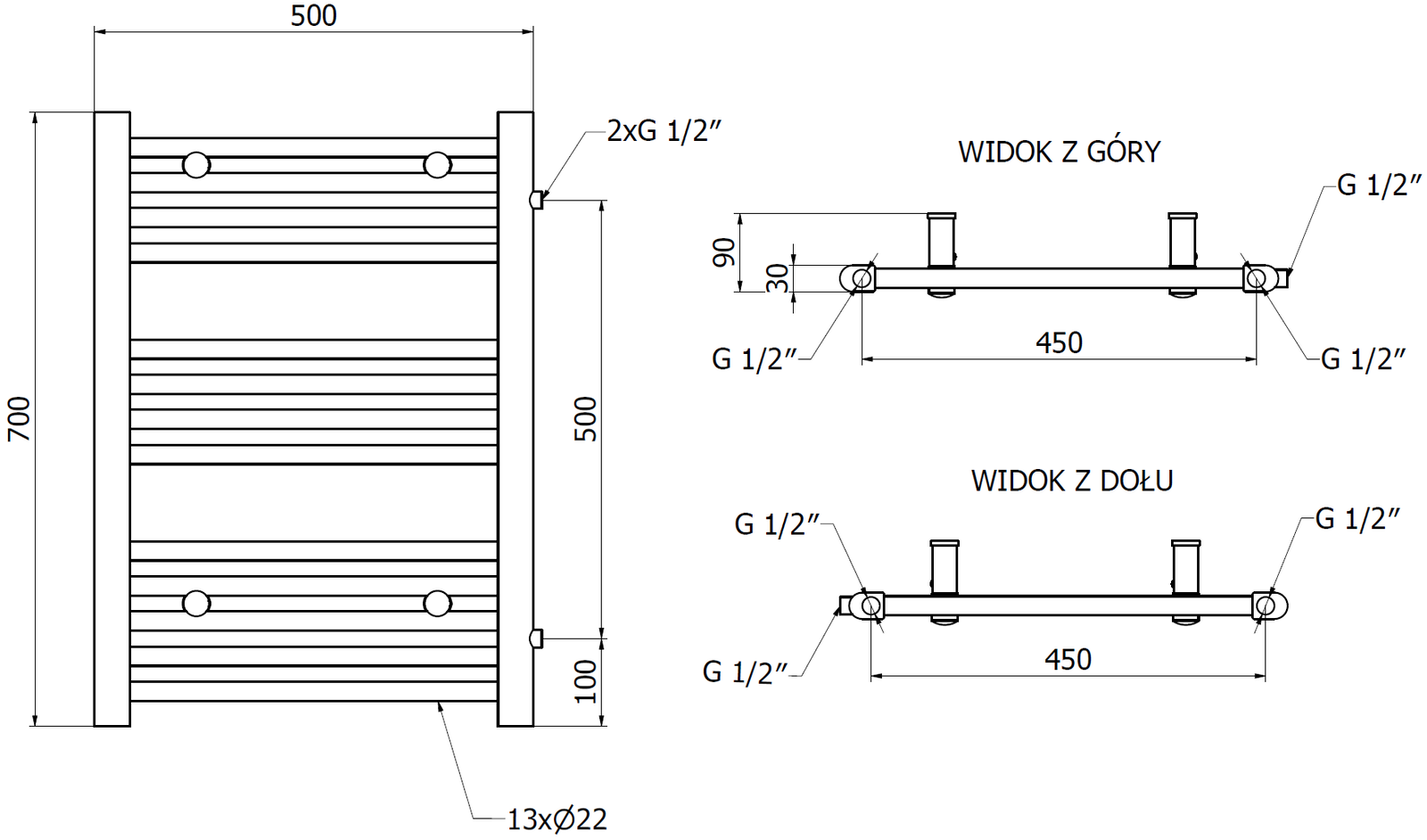 Le radiateur de salle de bain Mexen Mars est la solution idéale pour votre salle de bain. Grâce à ses dimensions compactes de 700 x 500 mm et à son élégant revêtement noir RAL 9005, il s'intègre parfaitement dans tout intérieur. Fabriqué en acier robuste, il est résistant à la corrosion et sa température de fonctionnement maximale est de 95 °C. Sa puissance calorifique de 284 W assure un chauffage rapide et efficace de la pièce. La possibilité de raccordement latéral et inférieur facilite l'installation, et les accessoires supplémentaires comme les supports et le kit de montage garantissent un usage pratique.