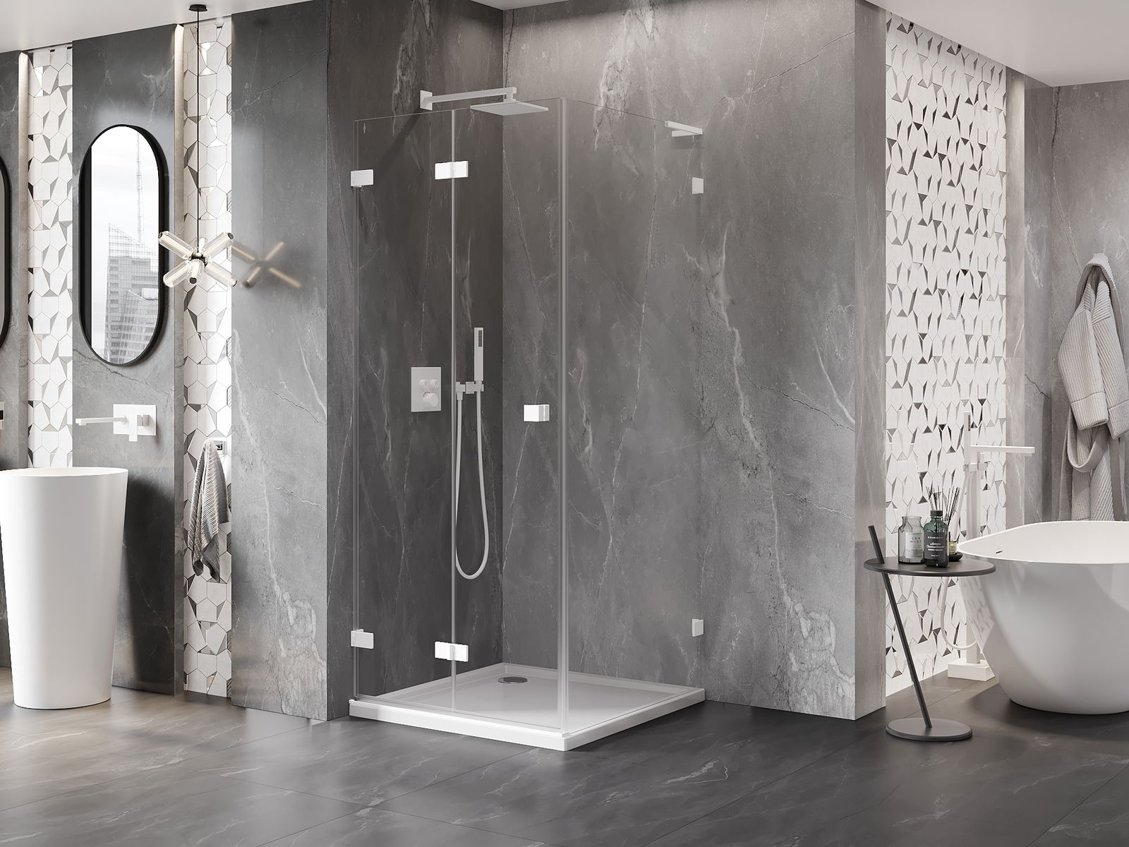 La poignée pratique et confortable est fabriquée en métal durable et résistant. Sa forme à la mode, combinée à une finition assortie à la couleur des profilés, donne à l'ensemble un aspect moderne et stylé, soulignant l'esthétique de chaque salle de bain.