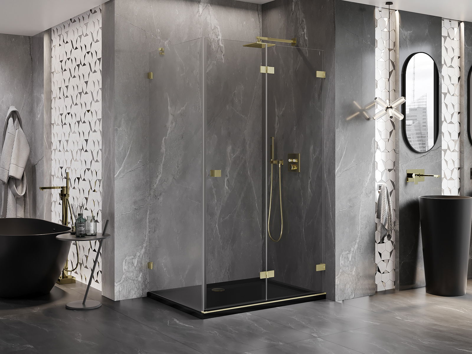 Mexen Lunar-F cabine de douche pliable droit 90 x 80 cm, transparent, or brossé - 836-090-080-55-00-P