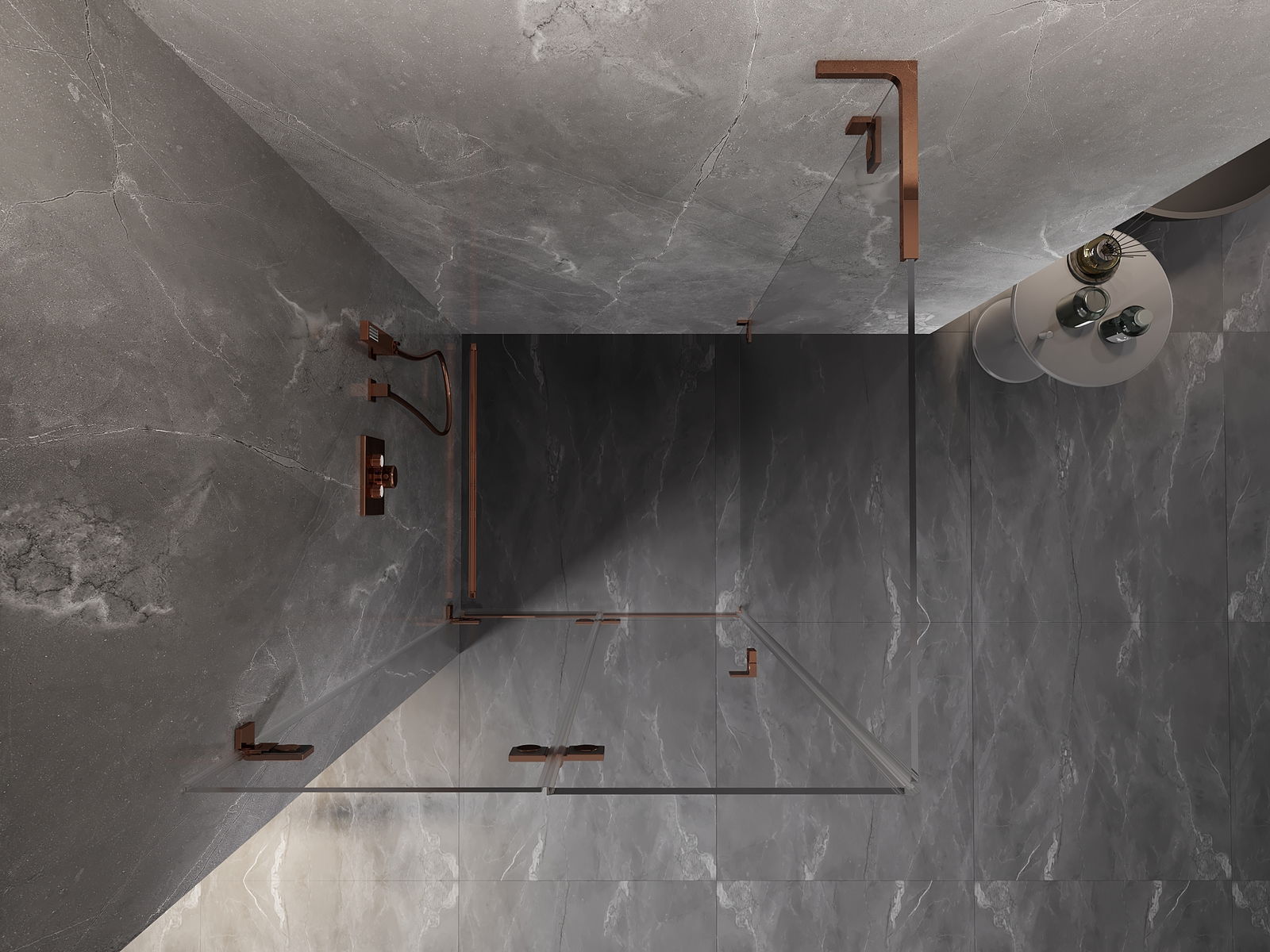 Mexen Lunar-F L cabine de douche pliante gauche 90 x 90 cm, transparent, or rose - 836L-090-090-60-00-L
