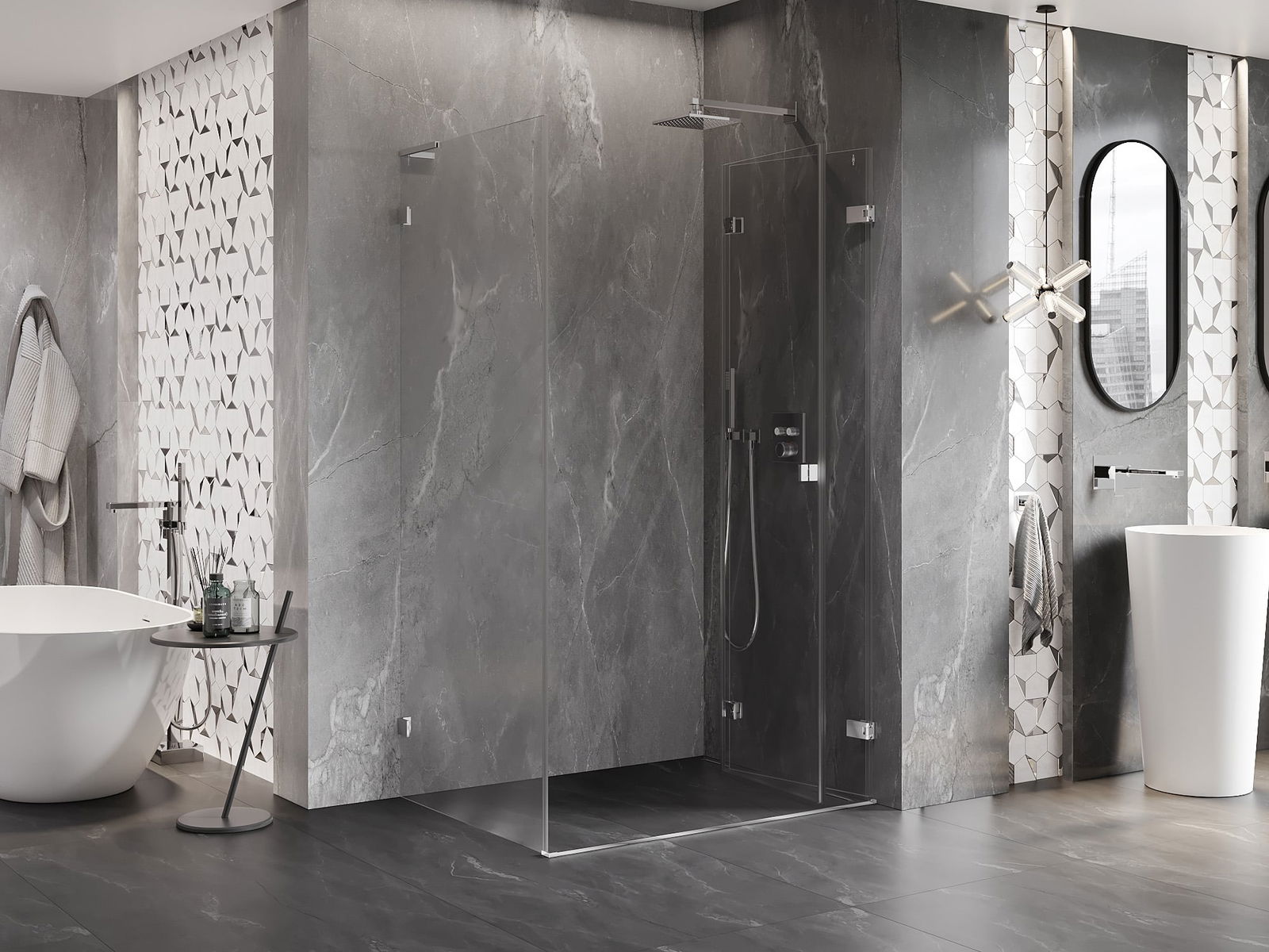La poignée pratique et confortable est fabriquée en métal durable et résistant. Sa forme à la mode, combinée à une finition assortie à la couleur des profilés, donne à l'ensemble un aspect moderne et stylé, soulignant l'esthétique de chaque salle de bain.