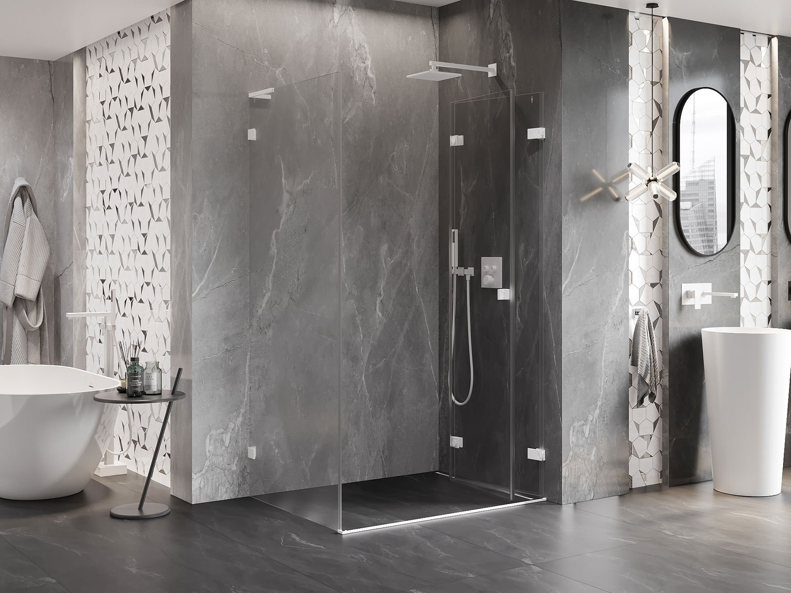 Les pinces et les charnières sont fabriquées en laiton très durable et forment en plus une surface de verre affleurante. C'est un excellent choix qui allie élégance, durabilité et design moderne. Grâce à ces solutions, la douche gagne en esthétique, tout en facilitant le maintien de la propreté.
