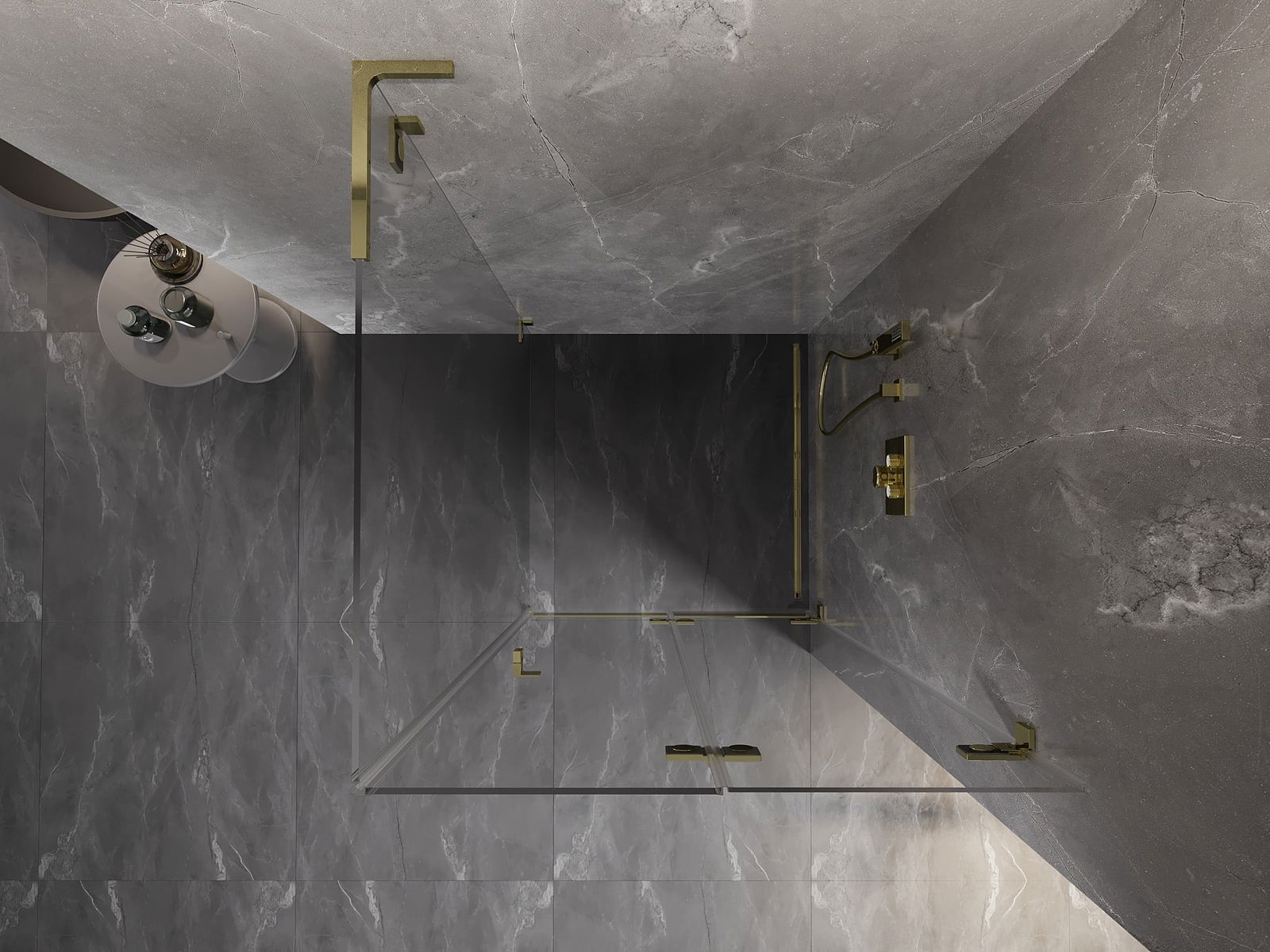 Mexen Lunar-F L cabine de douche pliable droite 70 x 70 cm, transparent, doré - 836L-070-070-50-00-P