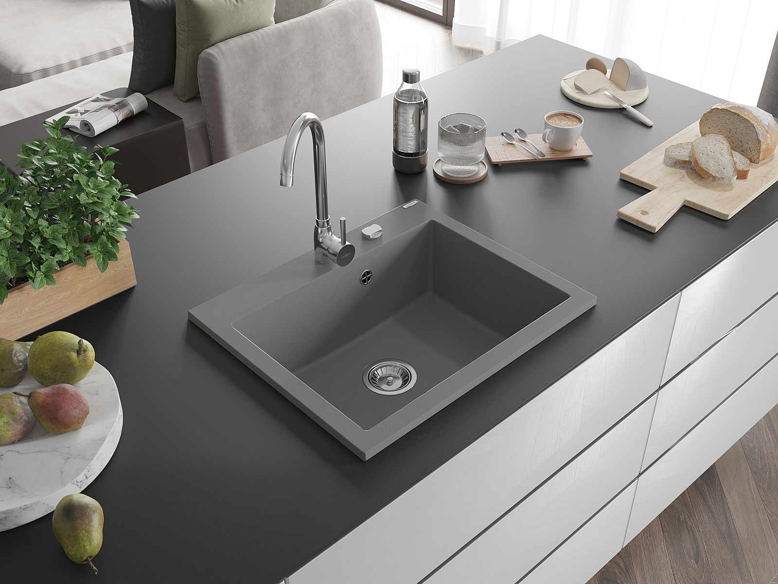 Mexen Elix évier en granit 1 bac 600 x 500 mm, gris, siphon chromé - 6525601005-71