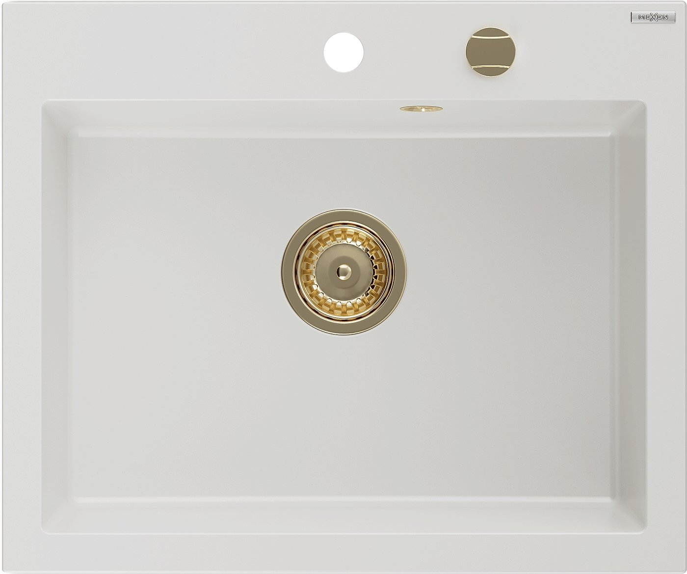 Mexen Elix évier en granit 1-bac 600 x 500 mm, blanc, siphon doré - 6525601005-20-G