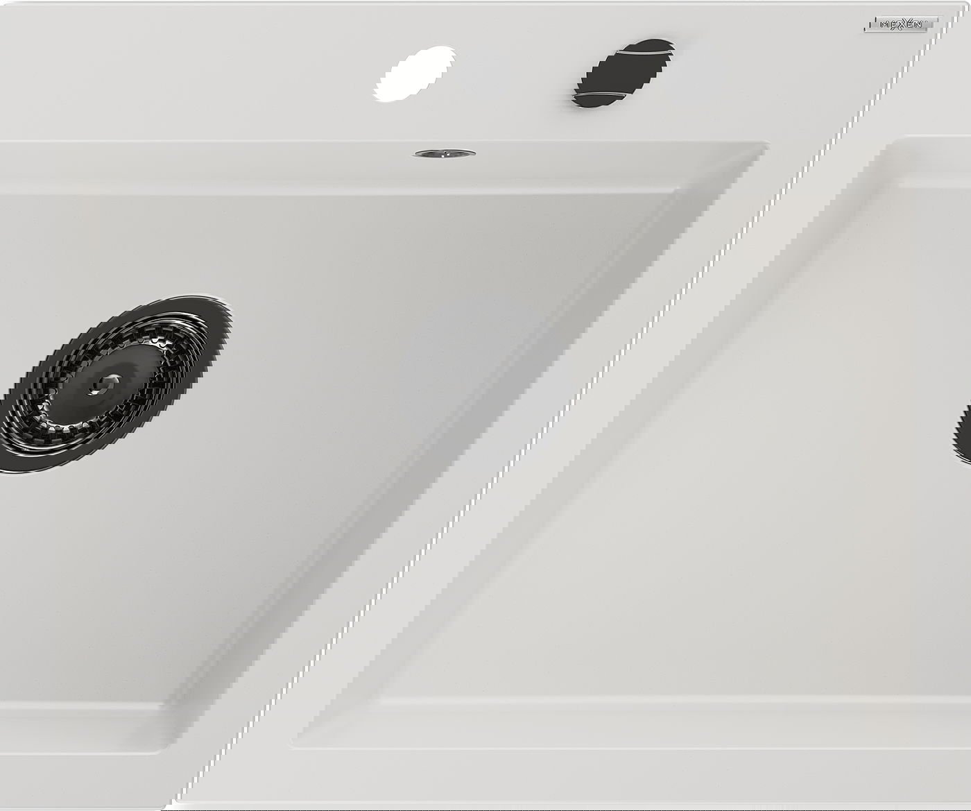 Mexen Elix évier de cuisine en granit 1 bac 600 x 500 mm, blanc, siphon noir - 6525601005-20-B