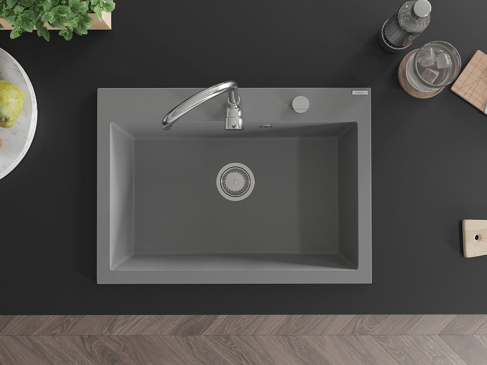 Mexen Elix évier en granit 1 bac 700 x 500 mm, gris, siphon chromé - 6526701005-71