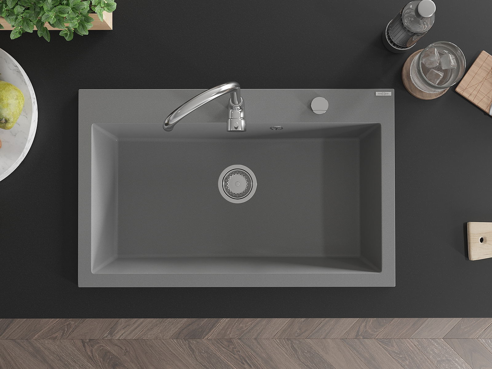 Mexen Elix évier de cuisine 1 bac en granit 800 x 500 mm, gris, siphon chromé - 6527801005-71