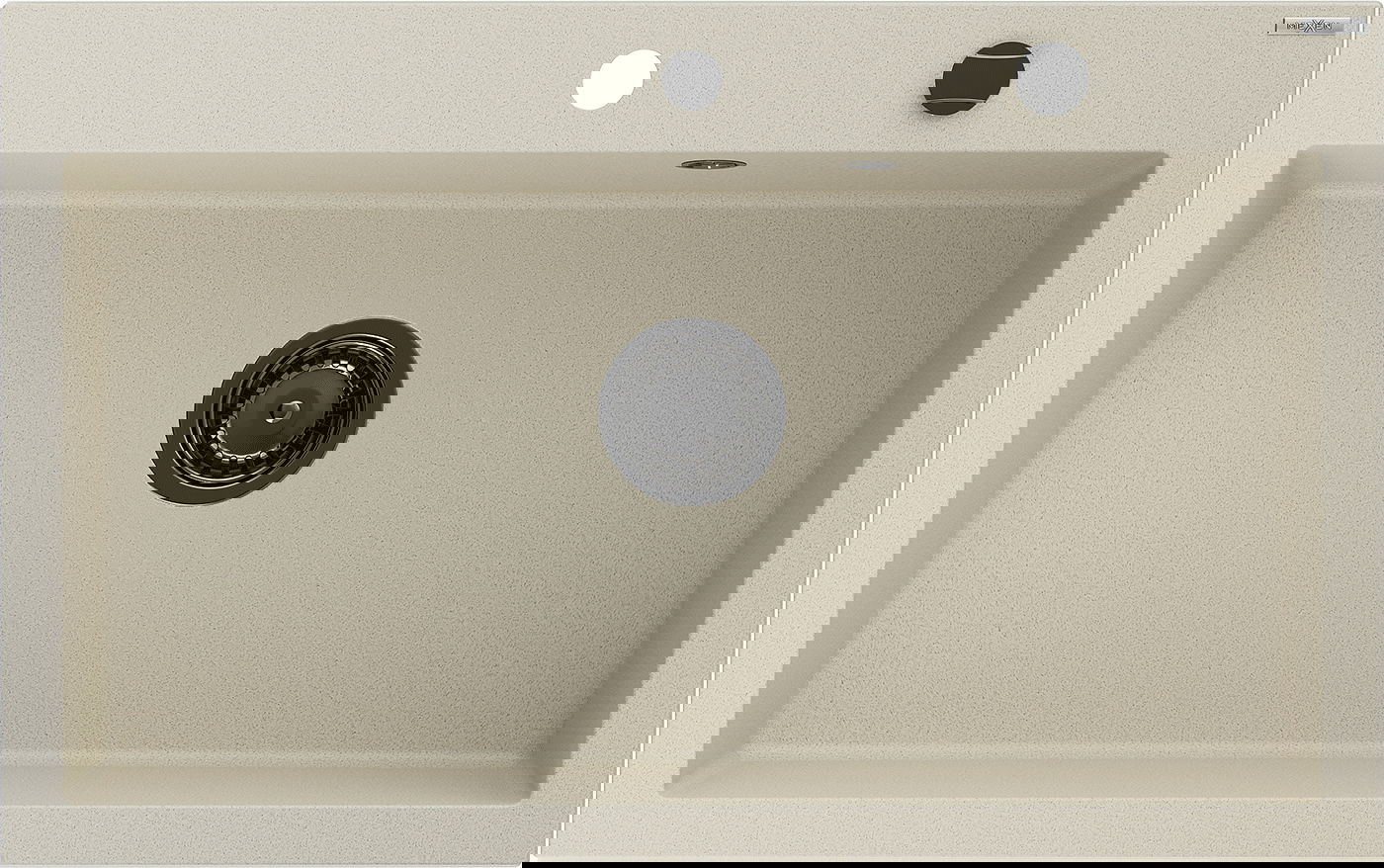 L'évier a un trou sous-meulé de 35 mm de diamètre à percer soi-même. Il peut être utilisé, entre autres, pour installer un distributeur de liquide, ce qui éliminera la présence de bouteilles en plastique dans la cuisine et lui donnera une finition élégante.
