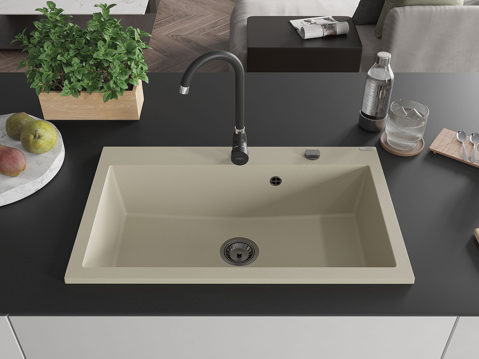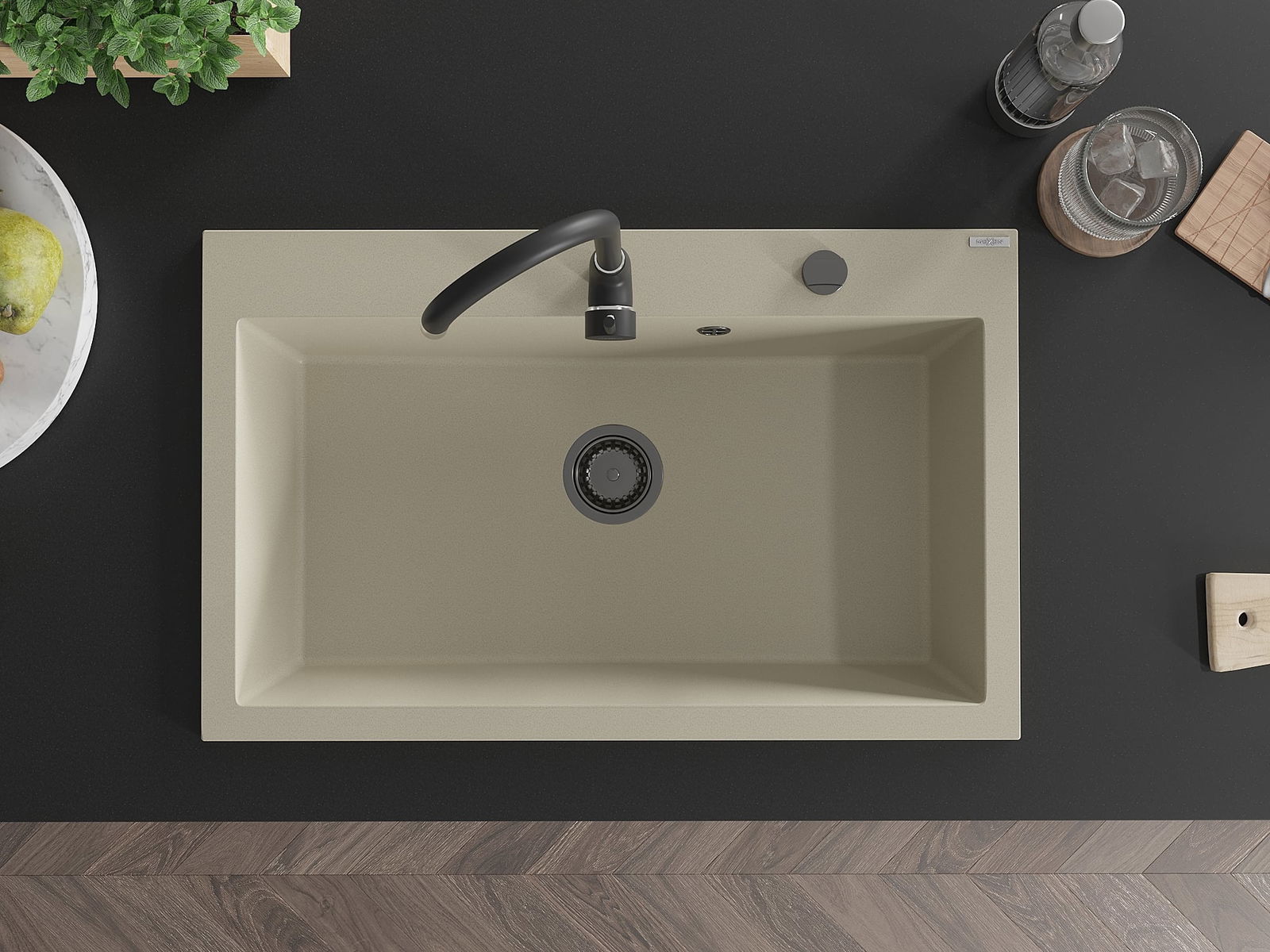 Mexen Elix évier en granit 1 bac 800 x 500 mm, beige, siphon noir - 6527801005-69-B