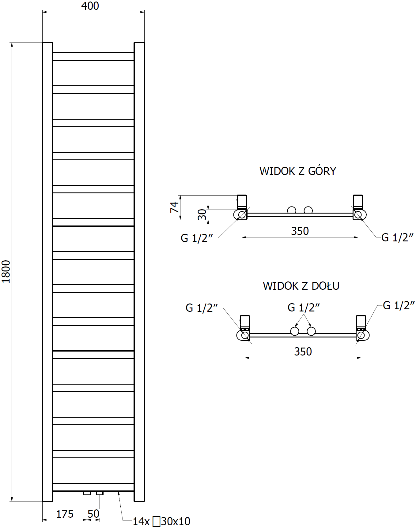 Mexen Bolt radiateur de salle de bain 1800 x 400 mm, 406 W, noir - W126-1800-400-00-70