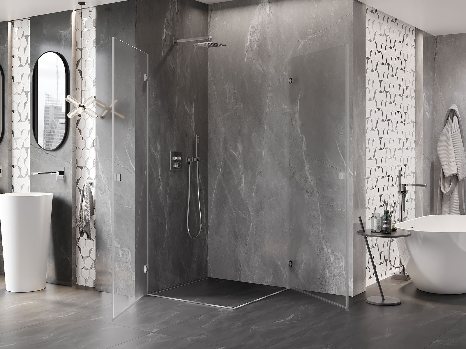 Les pinces ont été fabriquées en laiton très résistant et créent en plus une surface de verre affleurante. C'est un excellent choix qui combine élégance, durabilité et design moderne. Grâce à ces solutions, la douche gagne en esthétique tout en facilitant l'entretien de la propreté.