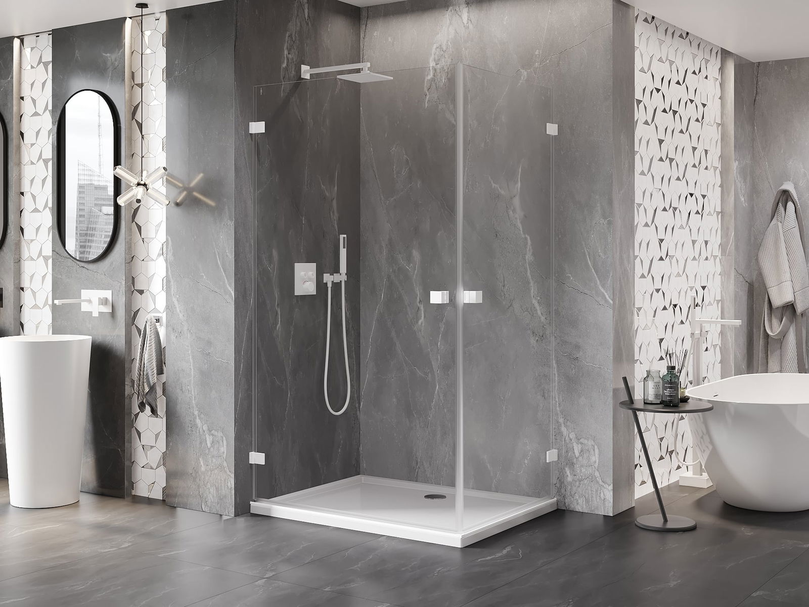 Mexen Lunar-B Duo cabine de douche pivotante 100 x 75 cm, transparent, blanc - 832-100L-075P-20-00