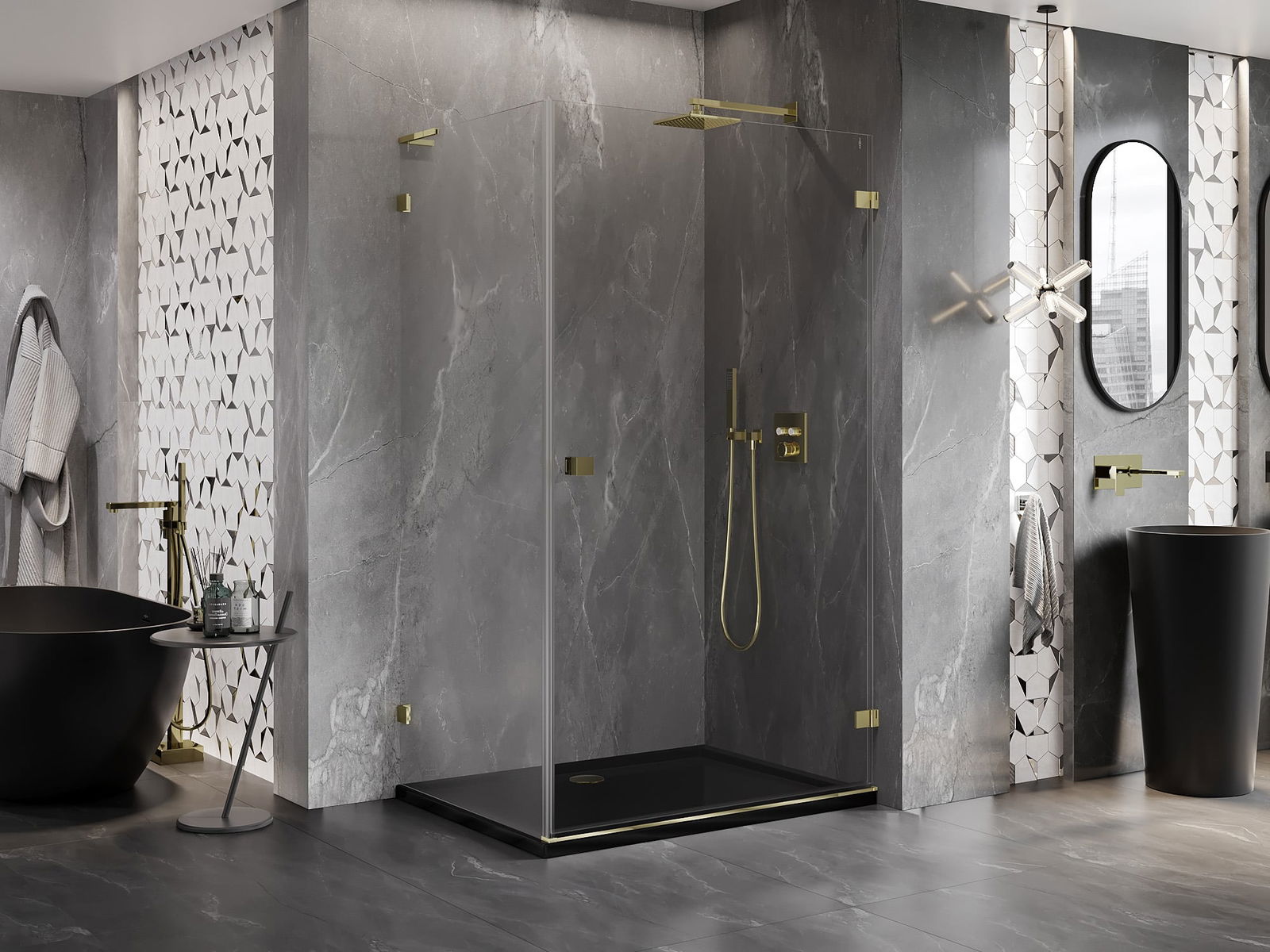 La poignée pratique et confortable est fabriquée en métal durable et résistant. Sa forme à la mode, combinée à une finition assortie à la couleur des profilés, donne à l'ensemble un aspect moderne et stylé, soulignant l'esthétique de chaque salle de bain.