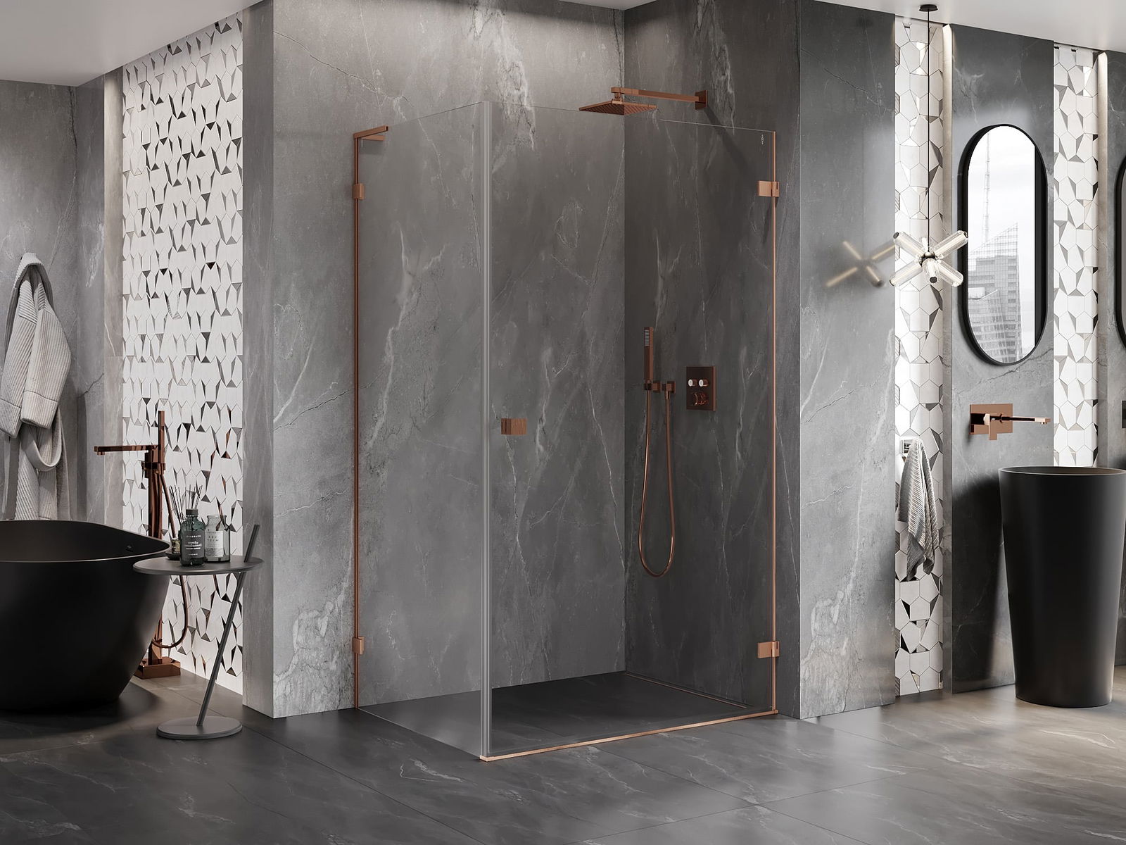 Mexen Lunar-B L cabine de douche pivotante droite 85 x 80 cm, transparent, cuivre brossé - 832L-085-080-65-00-P