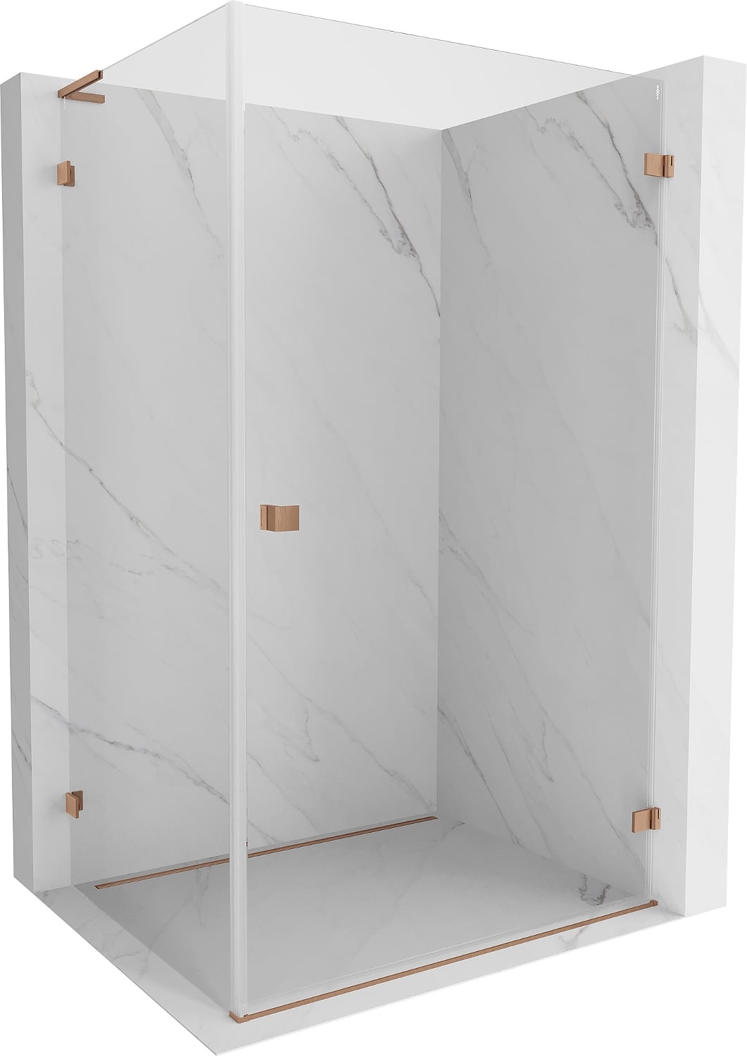 Mexen Lunar-B L cabine de douche pivotante droite 95 x 90 cm, transparent, cuivre brossé - 832L-095-090-65-00-P