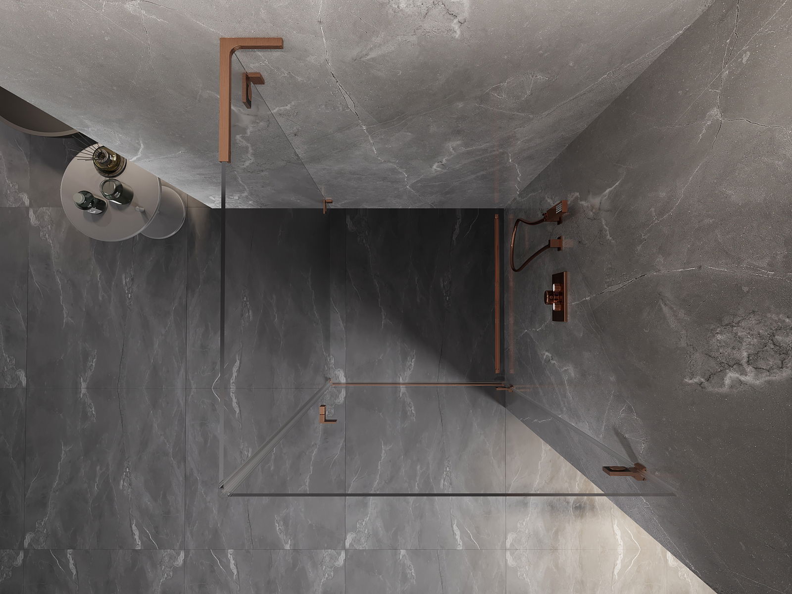 Mexen Lunar-B L cabine de douche pivotante droite 100 x 100 cm, transparent, cuivre brossé - 832L-100-100-65-00-P