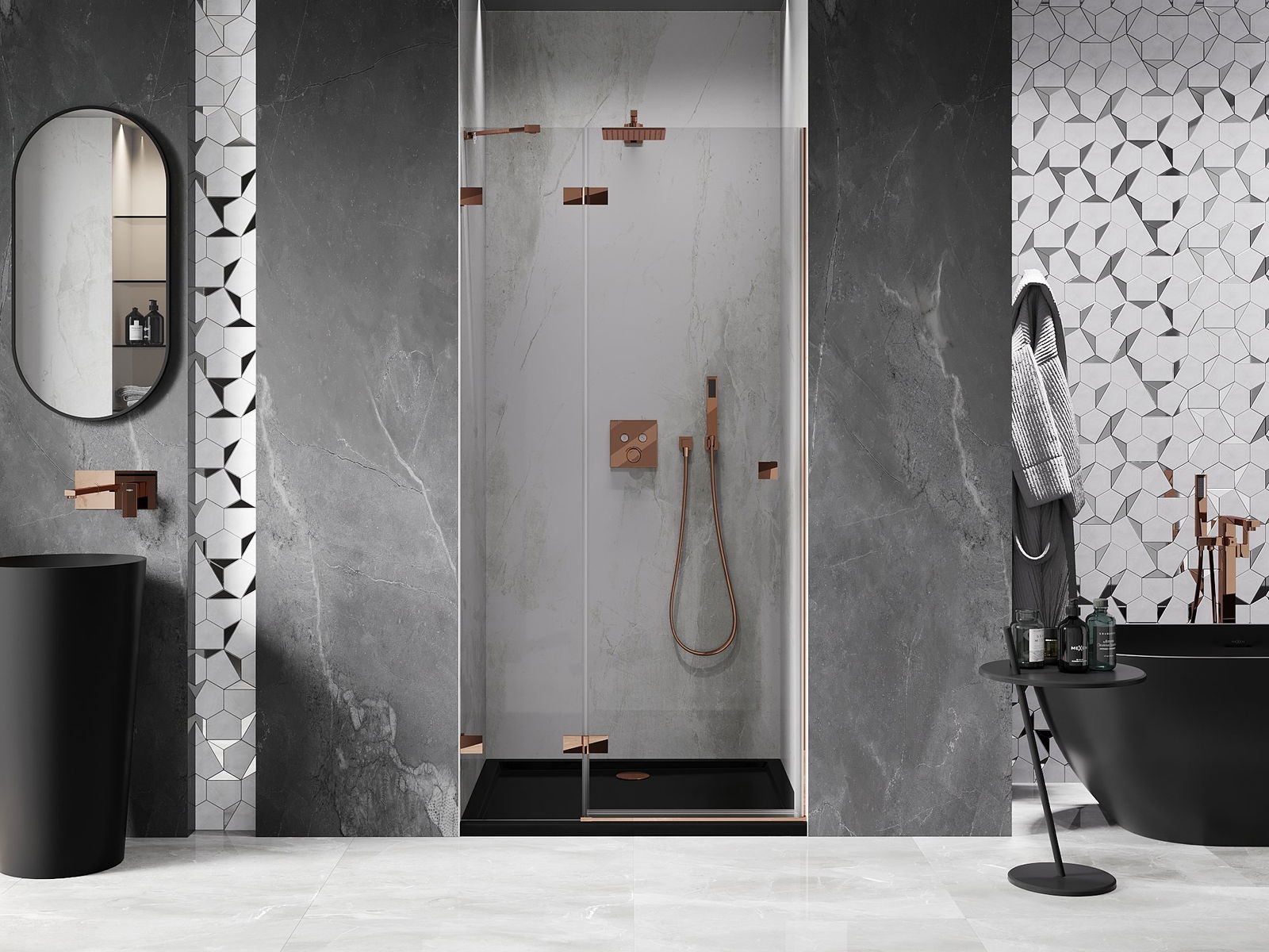 Mexen Lunar porte de douche pivotante gauche 85 cm, transparente, or rose - 834-085-000-60-00-L