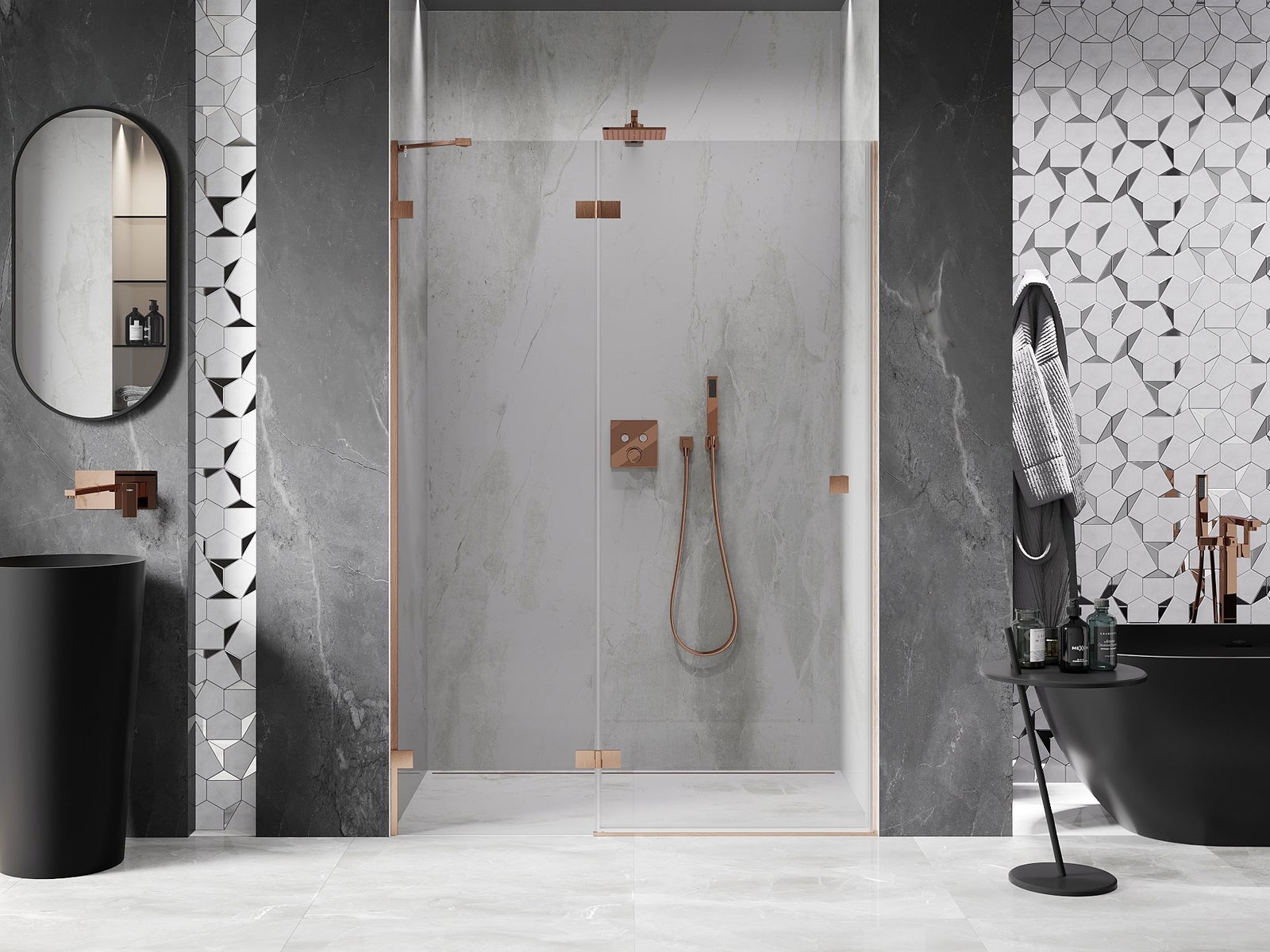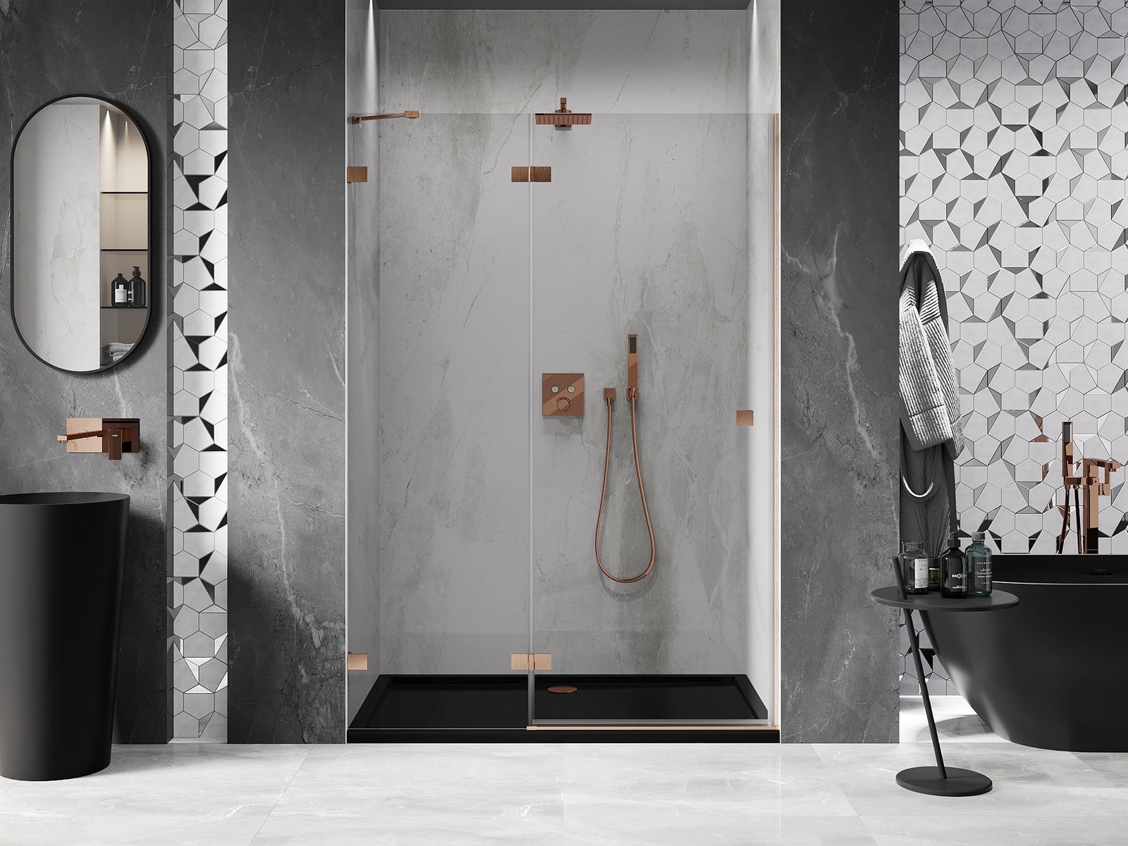 Mexen Lunar porte de douche pivotante gauche 140 cm, transparent, cuivre brossé - 834-140-000-65-00-L