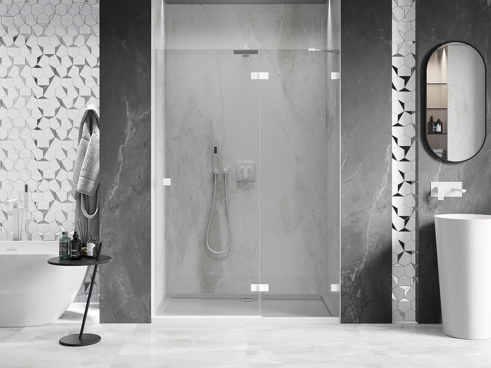Mexen Lunar porte de douche battante droite 130 cm, transparent, blanc - 834-130-000-20-00-P