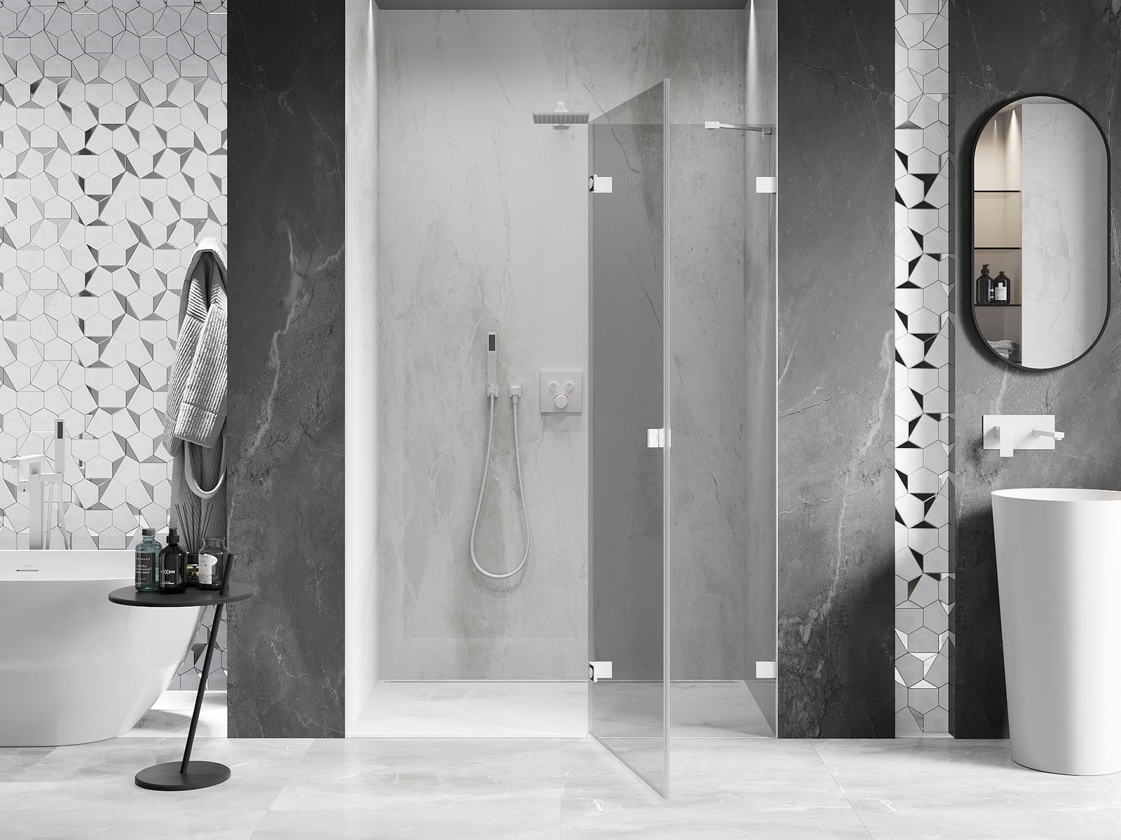 Les pinces et les charnières sont fabriquées en laiton très durable et forment en plus une surface de verre affleurante. C'est un excellent choix qui allie élégance, durabilité et design moderne. Grâce à ces solutions, la douche gagne en esthétique, tout en facilitant le maintien de la propreté.