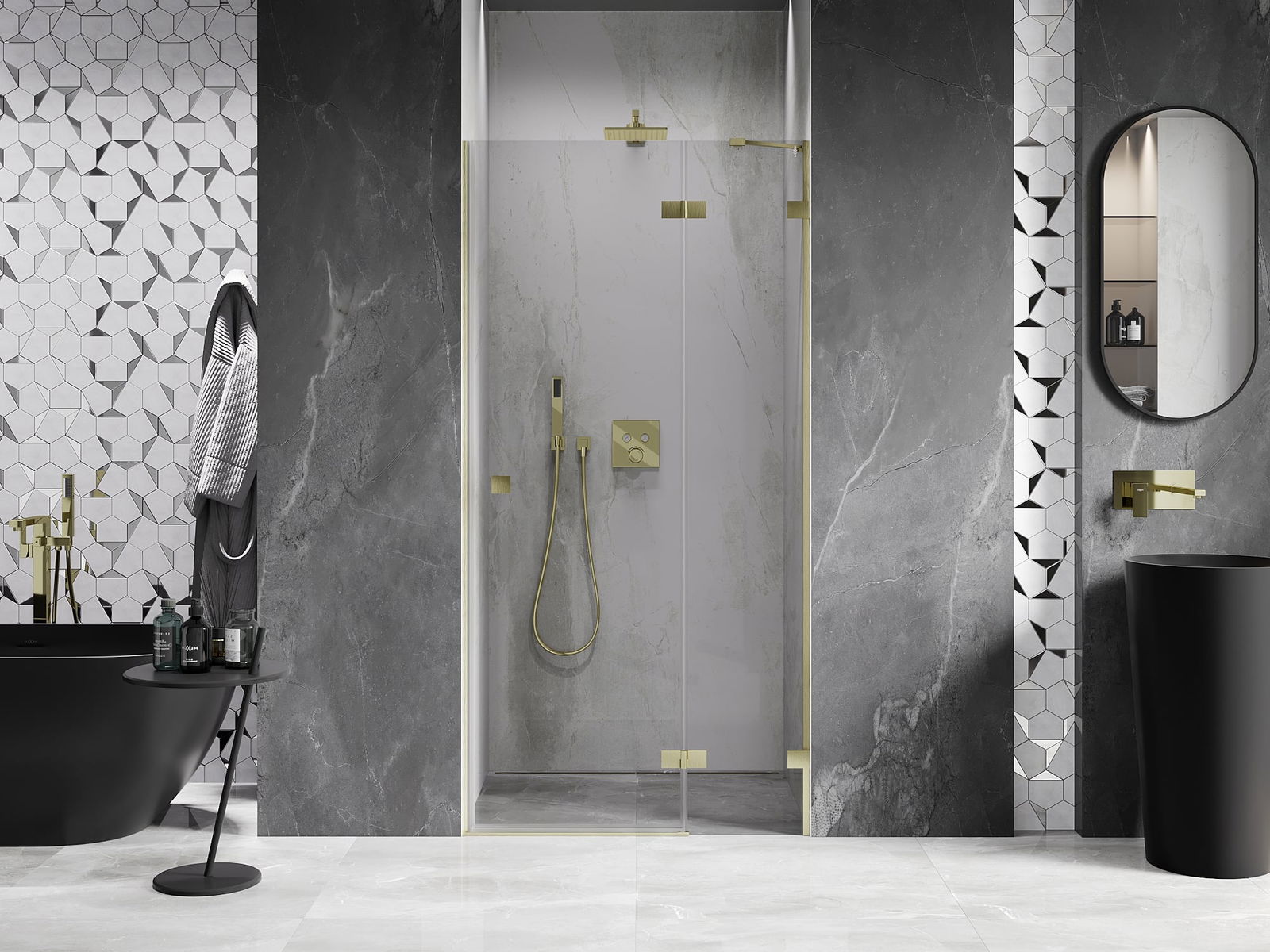 Mexen Lunar porte de douche battante droite 85 cm, transparent, or brossé - 834-085-000-55-00-P