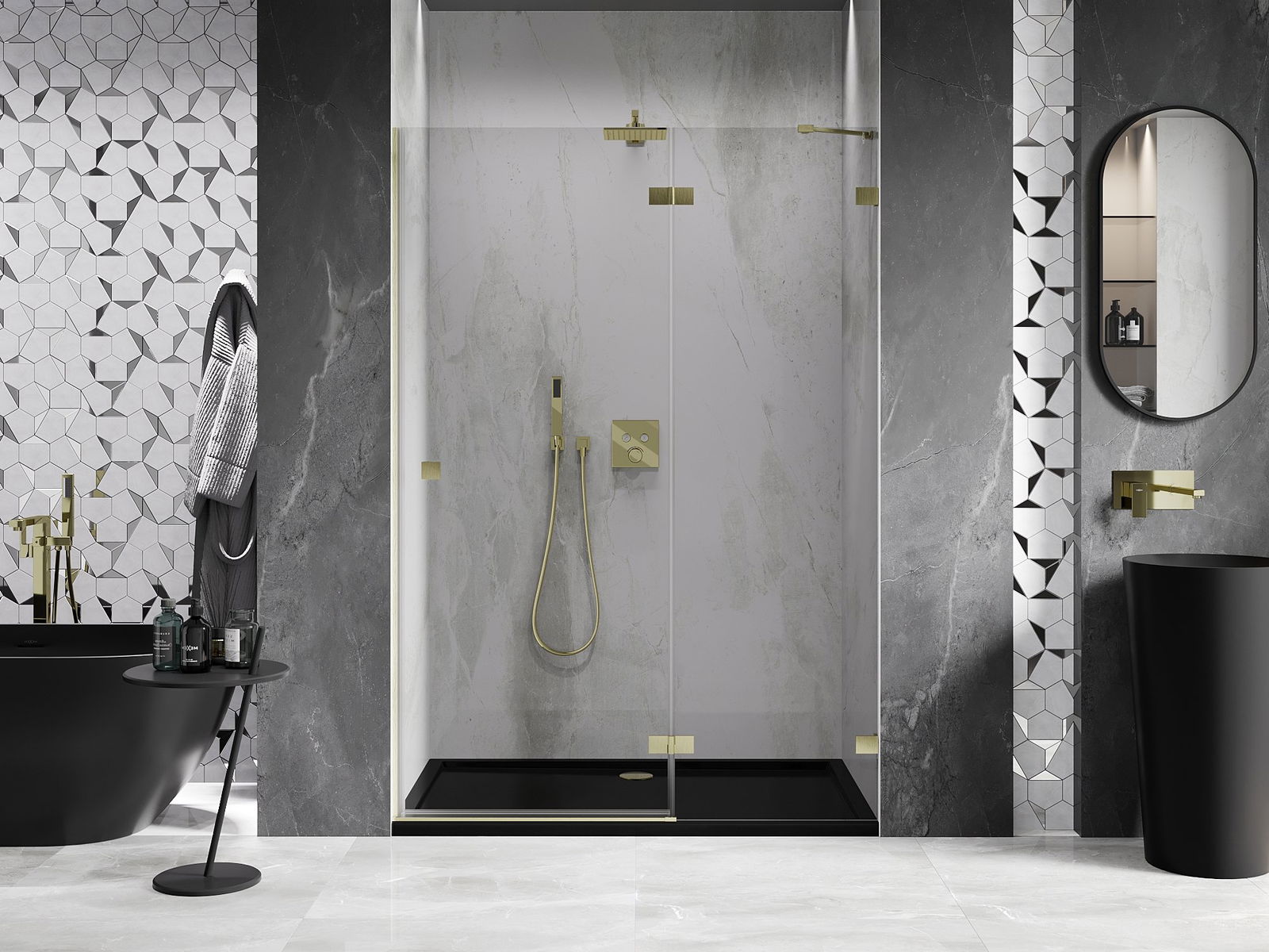 Mexen Lunar porte de douche pivotante droite 130 cm, transparent, or brossé - 834-130-000-55-00-P