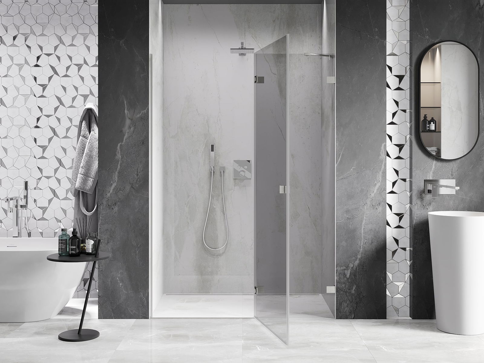 Les pinces et les charnières sont fabriquées en laiton très durable et forment en plus une surface de verre affleurante. C'est un excellent choix qui allie élégance, durabilité et design moderne. Grâce à ces solutions, la douche gagne en esthétique, tout en facilitant le maintien de la propreté.