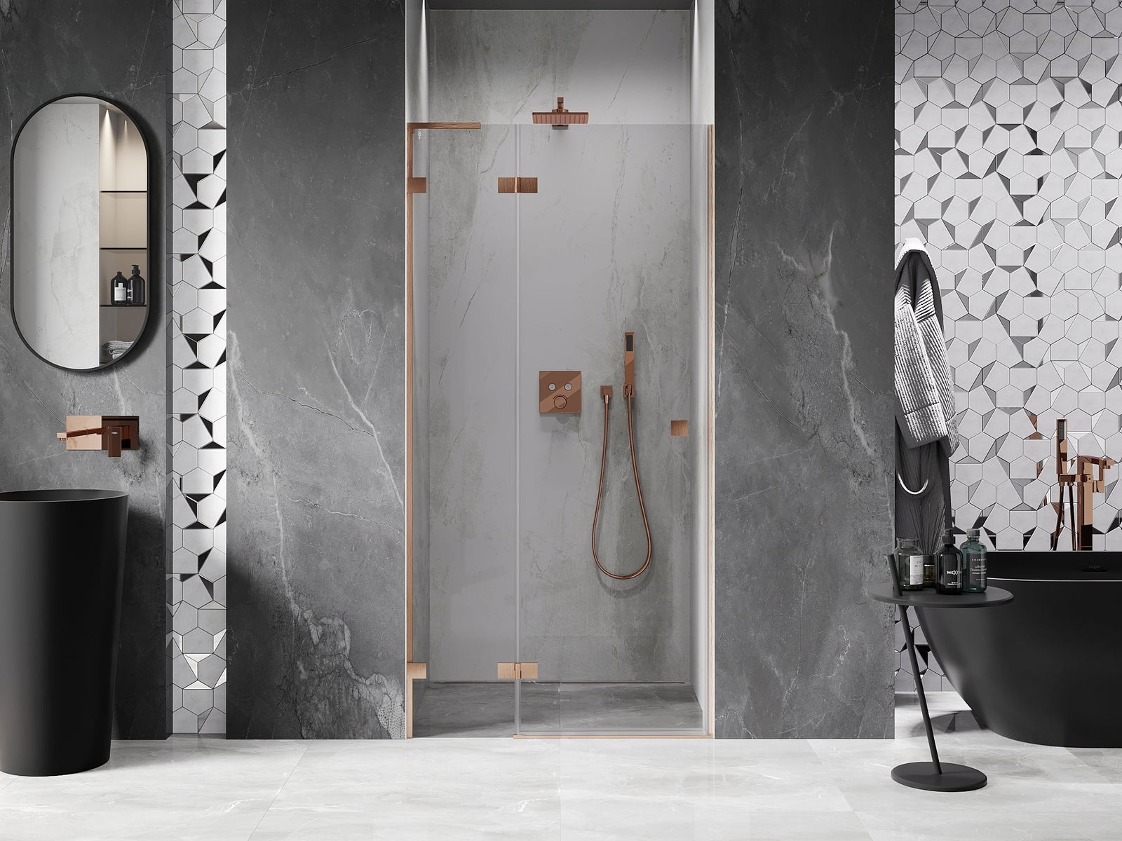 Mexen Lunar L porte de douche pivotante gauche 75 cm, transparent, cuivre brossé - 834L-075-000-65-00-L